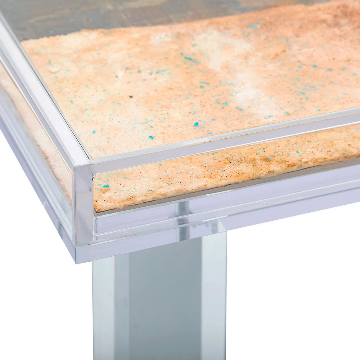 Completely enveloped in plexiglass for a lighter-than-air effect, the Abstraction 1 Rectangular Coffee Table is a celebration of metal tones and surprising combinations, here in oxidized copper and lead. Handcrafted by Kalarara artisans in Rome, each Abstraction is a one of a kind original that blends unique materials in new ways.