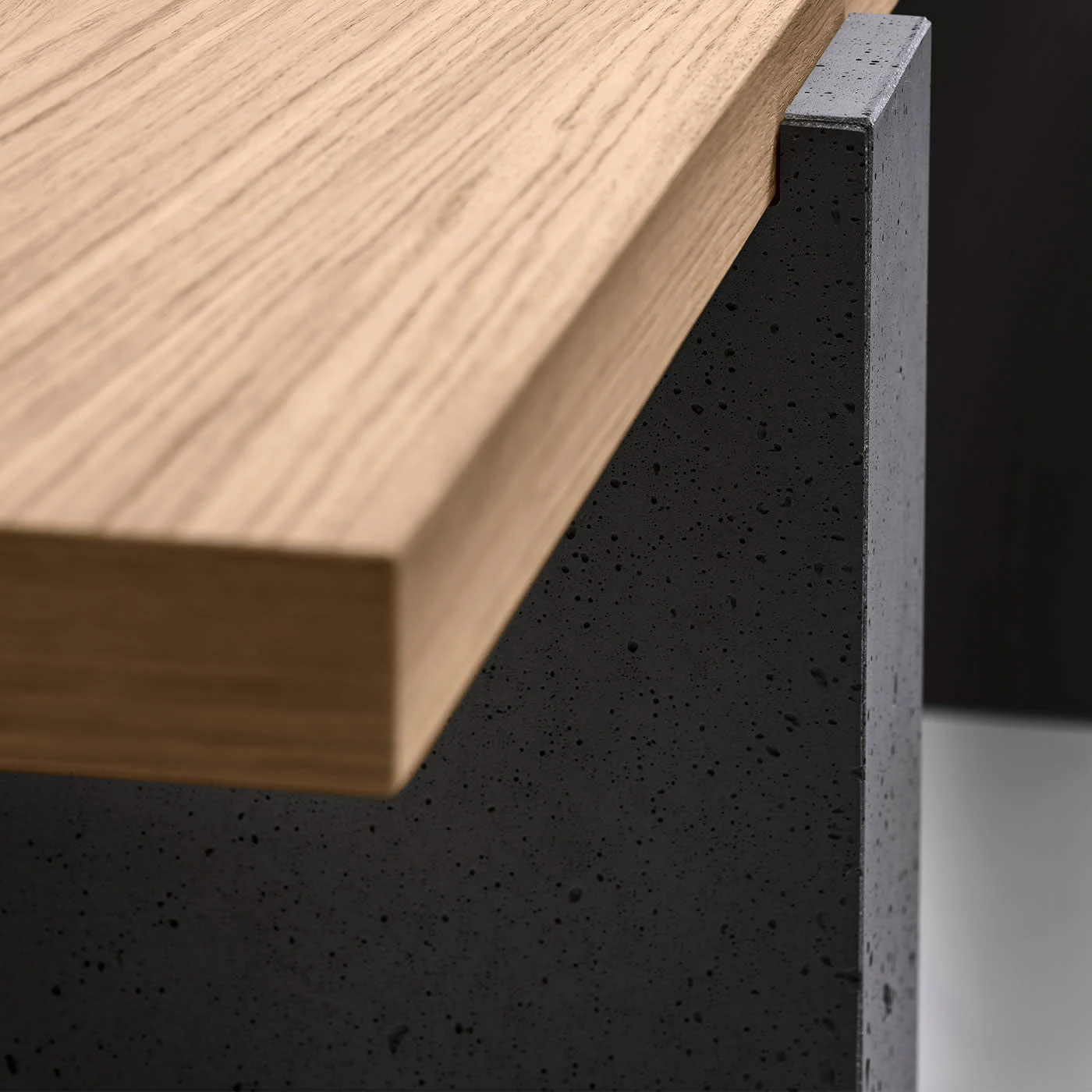 Linear outlines and natural materials for a table that invites conviviality: the traditional support surfaces made of bricks and wooden boards are reinterpreted in a contemporary key through the combination of legs in CIMENTO® and top in essence. Accademia tables, much more than simple furnishing accessories, are functional and versatile and give character to both home and office spaces. Available in different lengths, colors, and combinations. Please, ask the Concierge for further details