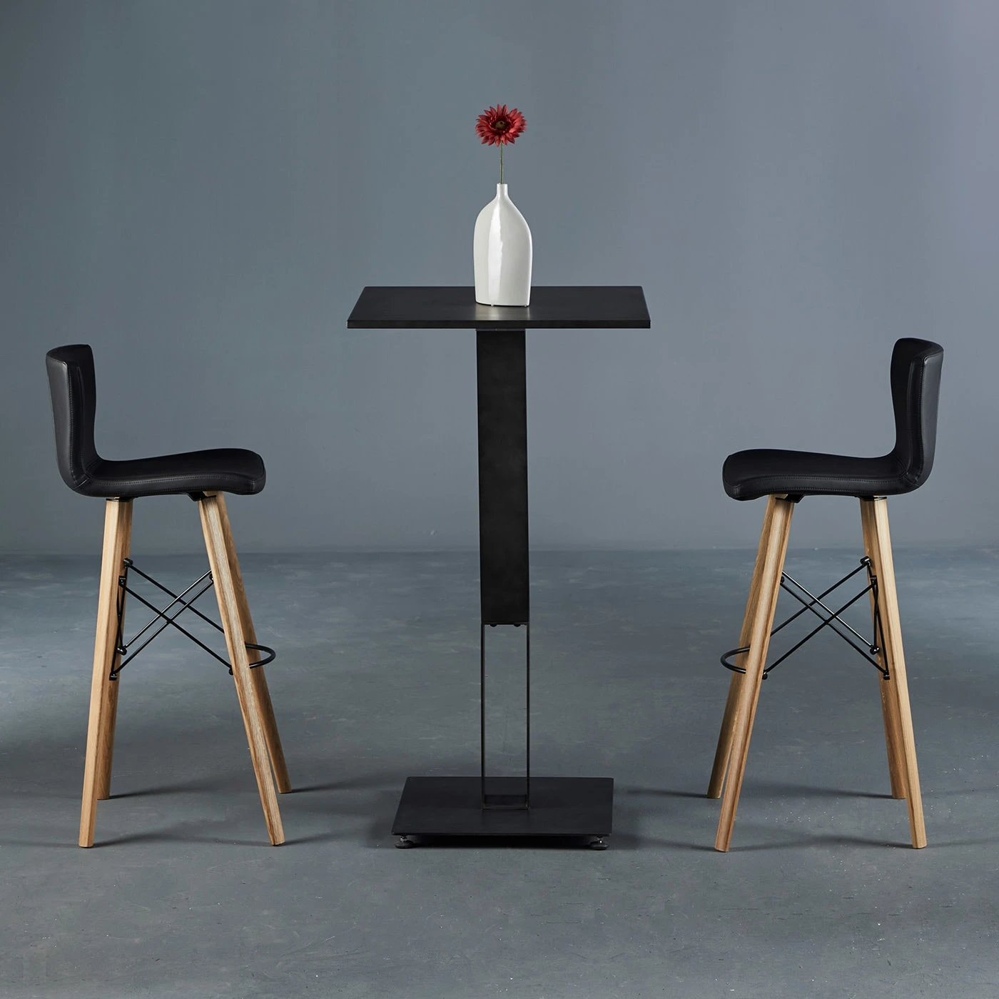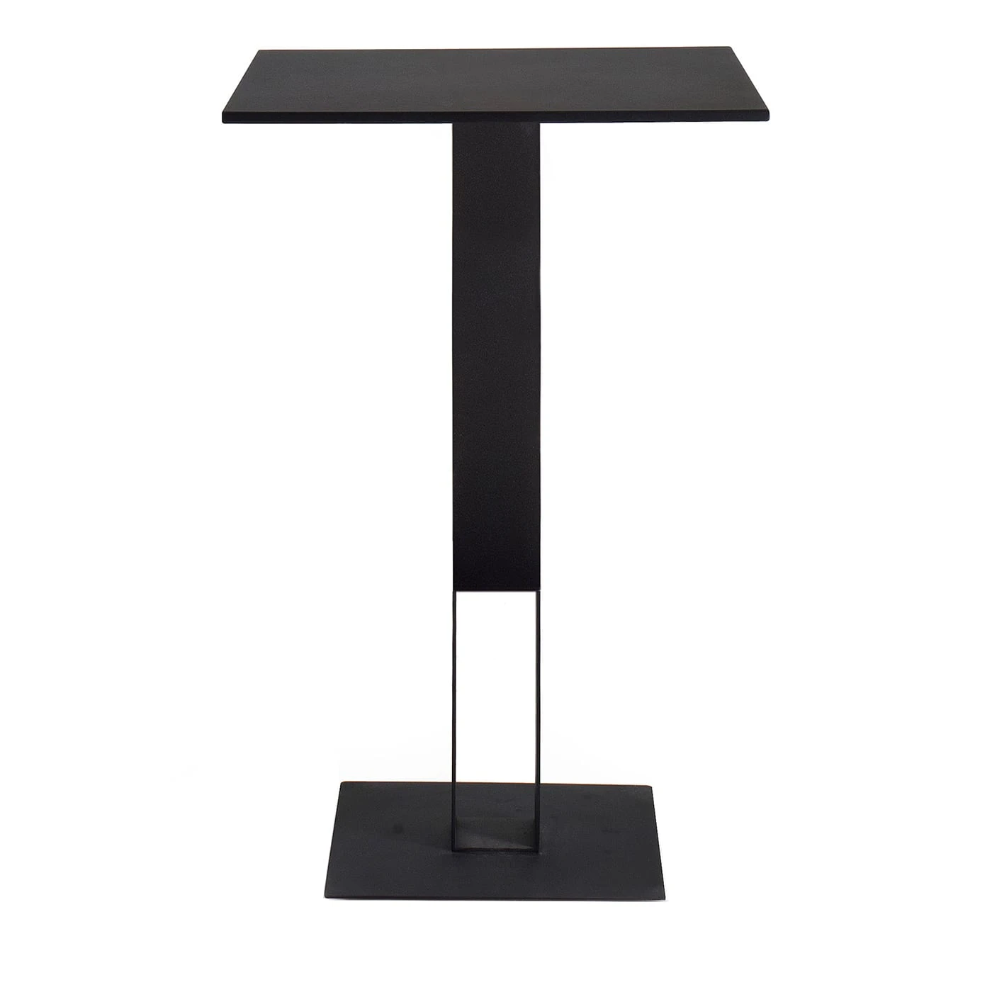 An intriguing interplay of solids and voids marks the rigorous geometric character of this table. Fashioned of black-varnished steel – including the sheet top – it makes for a superb addition to industrial-style decors, which it can accent with a dash of rustic if purchased in its variant with a central durmast column. Please ask the Concierge for available finishing and material variants.