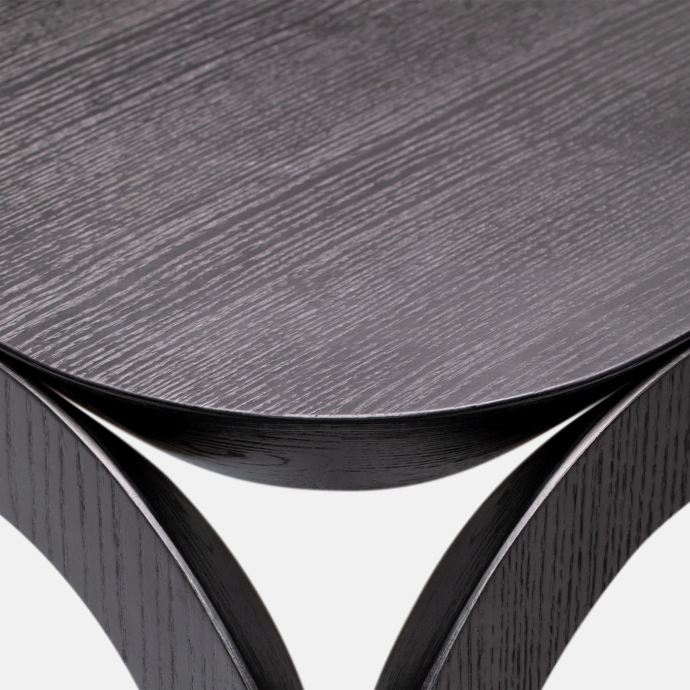 Showcasing a harmonious and visually balanced design of clean and simple allure, this dining table by Viviana De Grandi will make for a singular addition to a contemporary interior. Handcrafted of black-lacquered ash wood, its essential and soft lines recall the arch-shaped structure of ancient Roman plumbing systems.