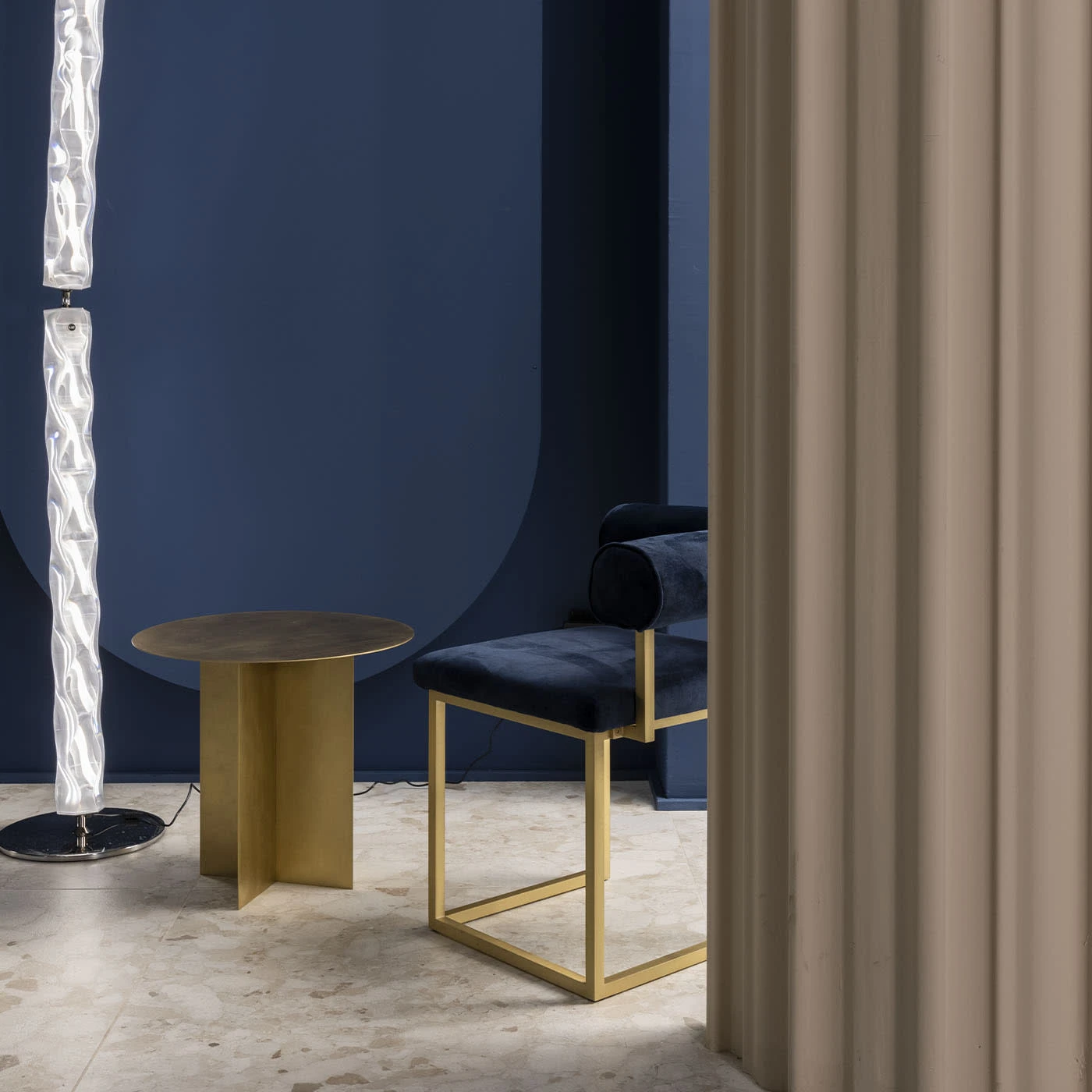 An iron origami that seems light, a game of cross-shaped forms and surfaces of any geometric shape define this collection of tables, characterized by a common color. The cross-shaped base fits any shape of the top, all produced with a 3mm metal plate of customizable color, a project in the making, a construction game in which the end user is free to create their custom table, a project within a project. Please, ask the Concierge Service for any dimensions customization.