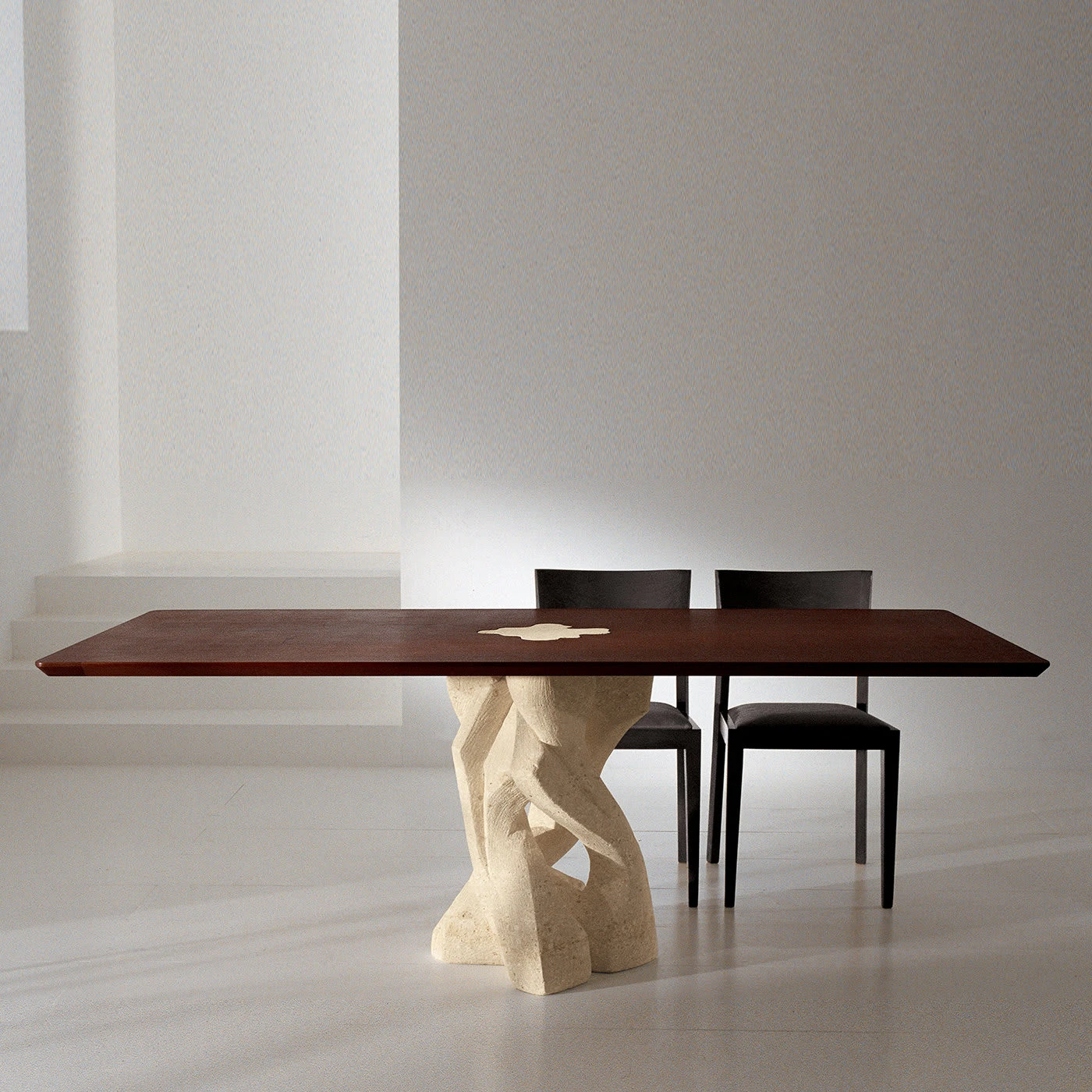 The dynamic Alex Wood Table by Giandomenico Sandri will add character and flair to a contemporary style dining room with its stylish and original design. The uniquely scupltured base crafted from white Vicenza stone provides a sturdy structure to support the stunning 200 x 90 cm top in luxurious walnut wood.