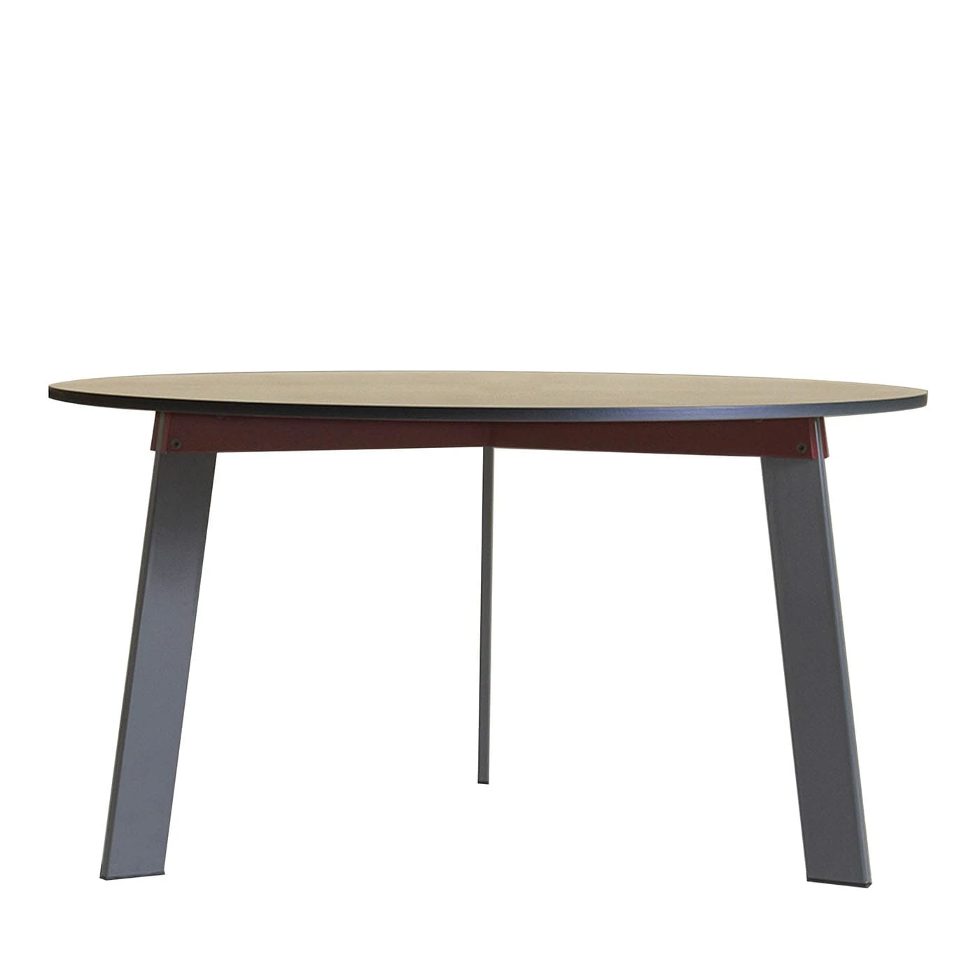 A striking design of minimalist inspiration, this round dining table will make for a timeless addition to a contemporary interior decor. Handmade of lacquered steel, three sturdy legs support an MDF top, lacquered with a matte, scratch-resistant finish. Please inquire with the Concierge for further information.