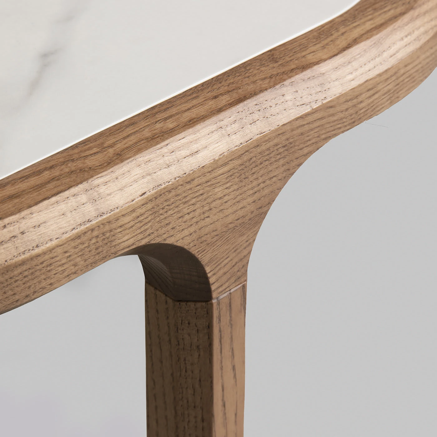 This low side table has a calacatta marble top that elegantly complements the ash wood structure. Bellagio is a new collection characterized by well-defined lines, wisely worked, which aims to satisfy the most sophisticated tastes, presenting itself with refined objects preciously finished in every detail. Mixing refined, rigorously natural materials with a finely worked solid wood structure, Bellagio offers complete furnishing from the living area to the sleeping area. Designed by Libero Rutilo.