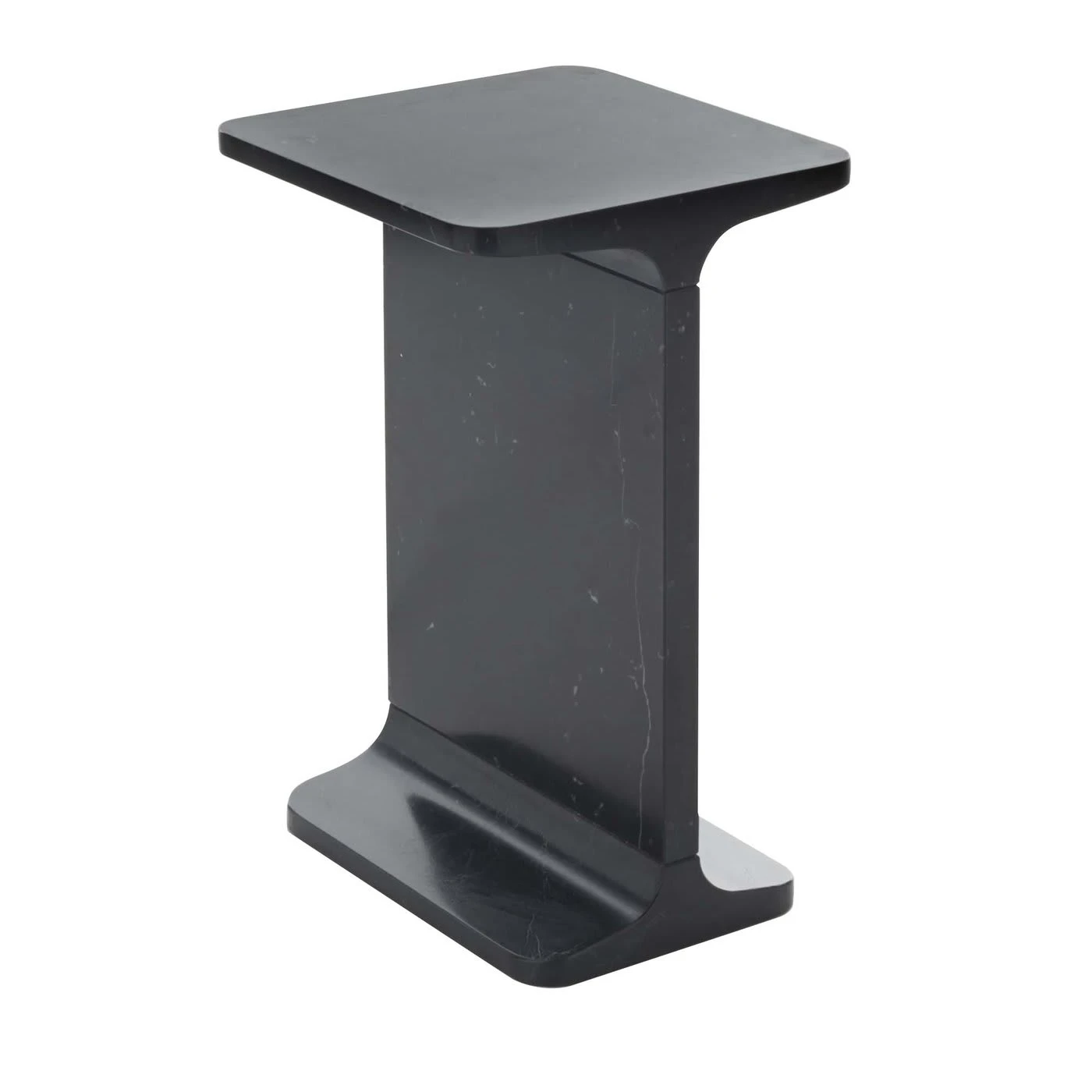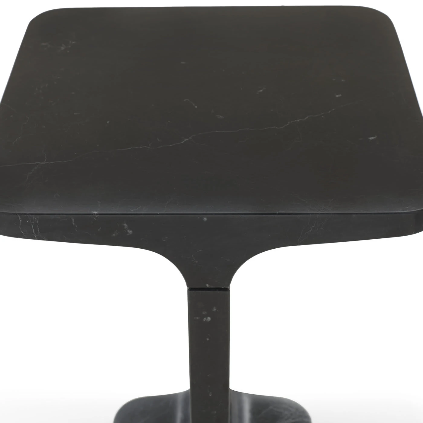 Square side table, in White Carrara marble, matt polished finish also available in Black Marquina marble, matt polished finish.