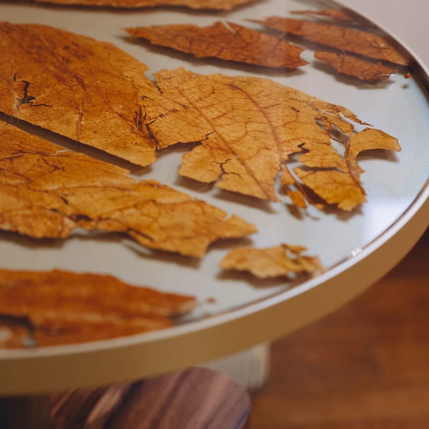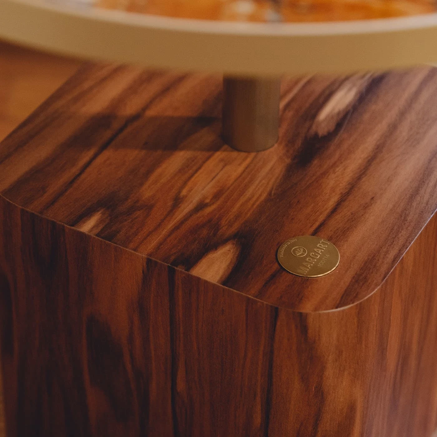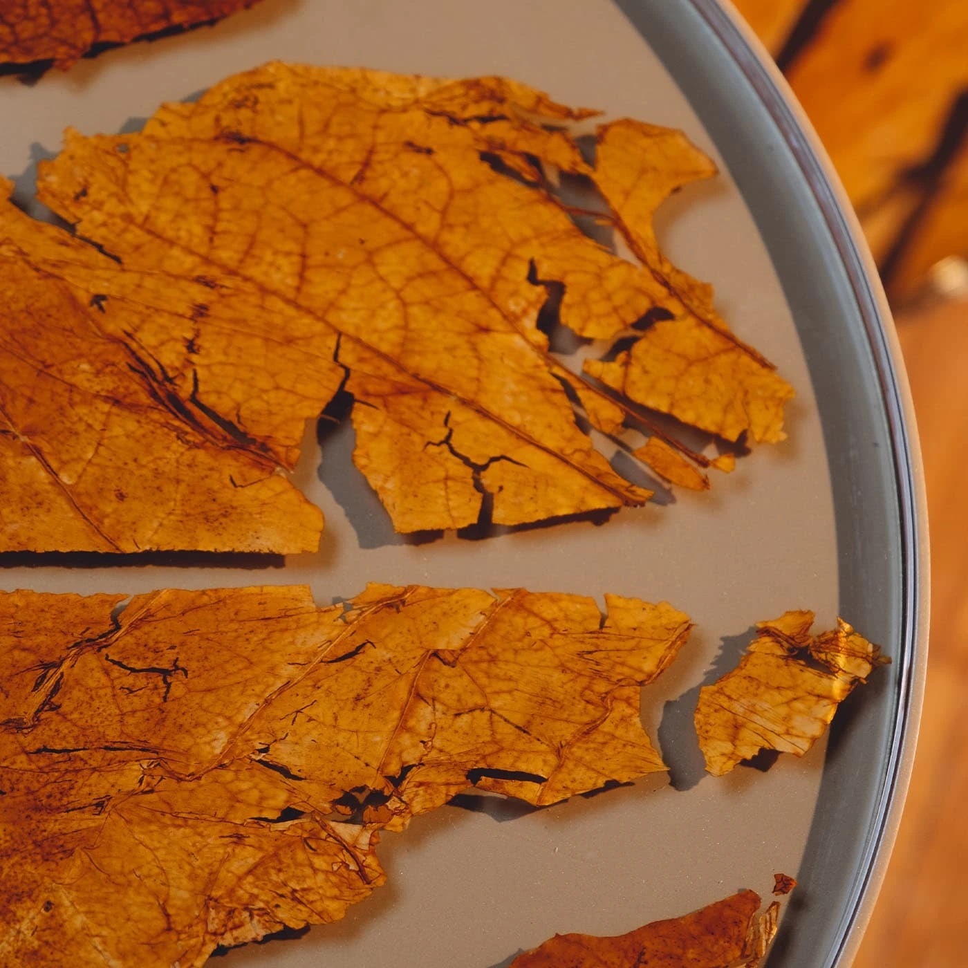 For cigar lovers and more, Margart has created a timeless coffee table. A new icon of luxury bio-design and a tribute to the ancient Italian tradition of growing tobacco leaves for the production of Tuscan cigars called ‘toscanelli’. The base is wood veneered in Palissandro, the table structure is satin brass, and the tabletop is composed of a glass top layered with tobacco leaves. The glass can be transparent or fumè color. Size: SMALL. Each coffee table is unique and can be customized.