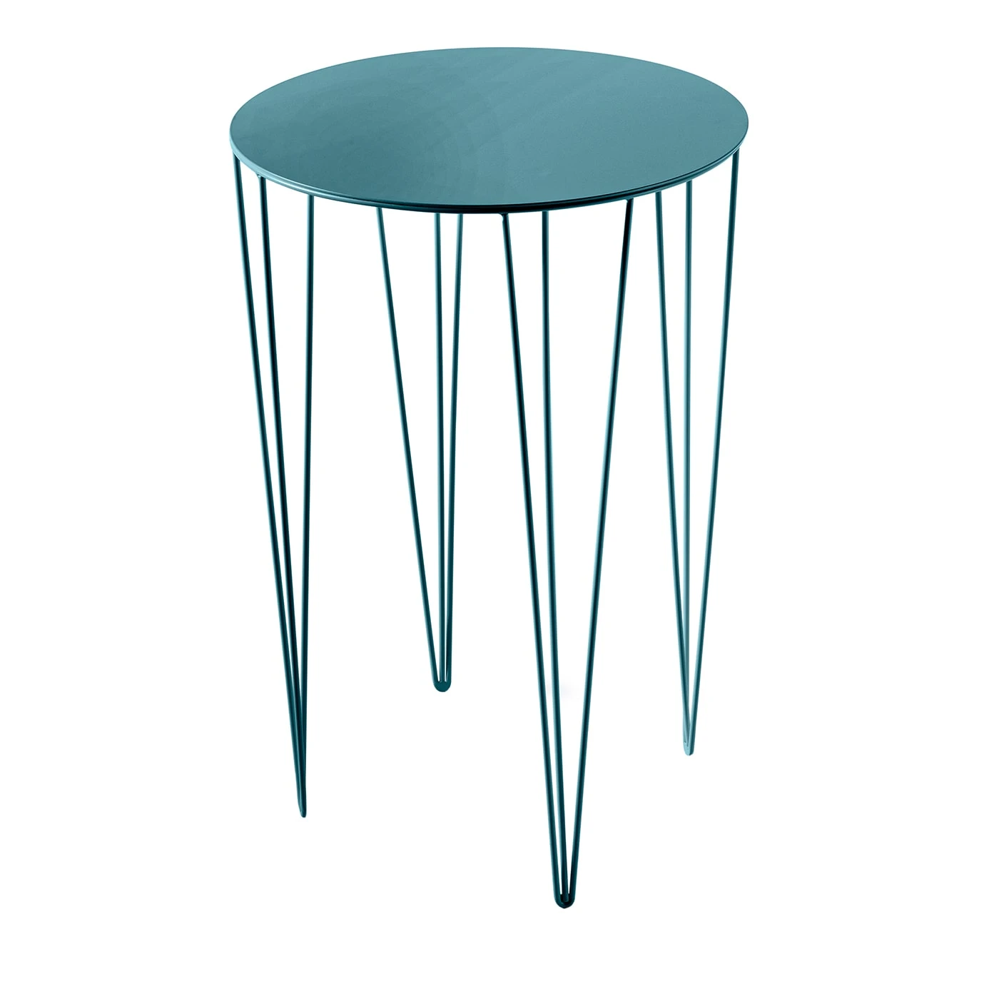 Blue steel round side table, designed by Antonino Sciortino for the Chele Collection.