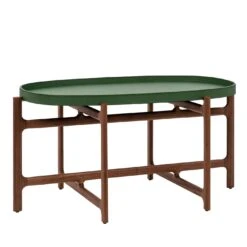 A contemporary design of striking visual impact and sophisticated character, this folding coffee table will make for an elegant addition to a living room or conversational area decor. Handmade of Canaletto walnut, the clean structure is topped with a removable green leather tray. Available in three sizes and other colors, please consult the Concierge for details.