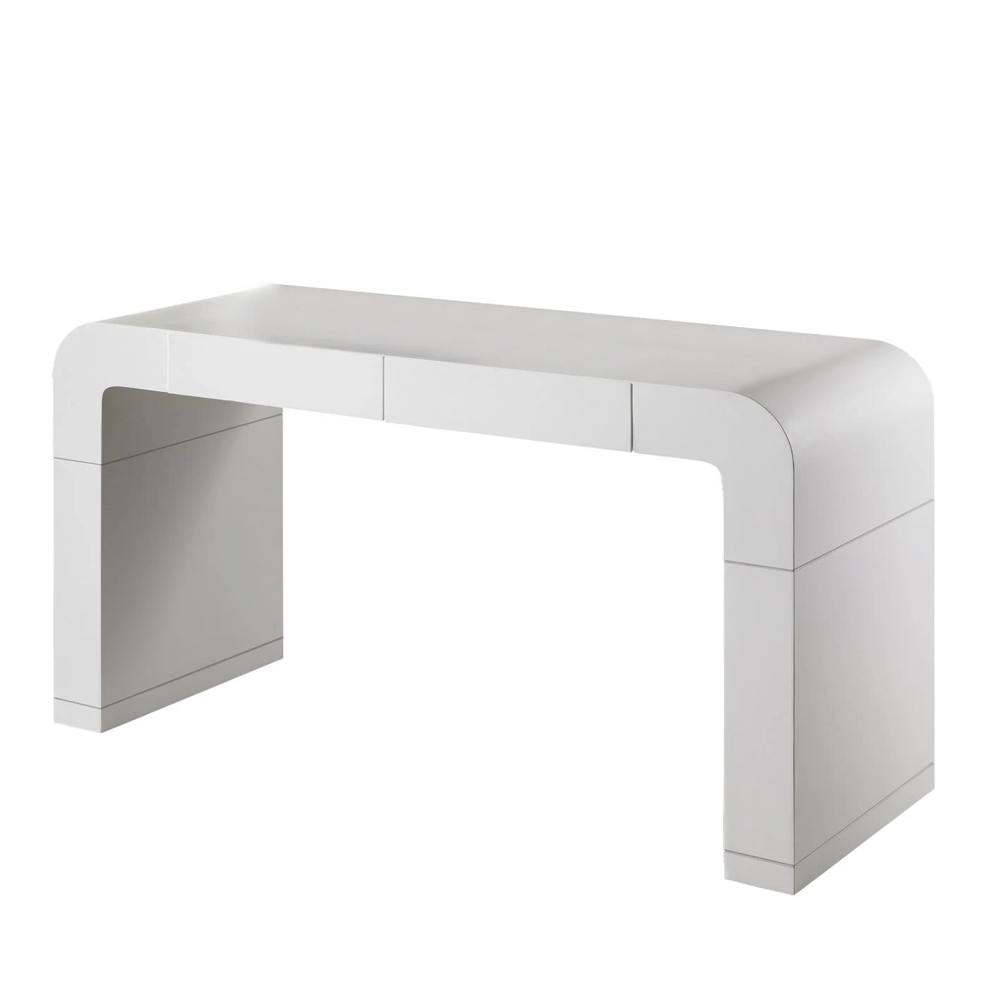 This distinctly contemporary desk draws inspiration from the ethereal elegance of clouds. The frame in curved plywood and MDF showcases a simple yet sinuous silhouette that includes two drawers perfectly blending in with the structure thanks to strategical milled details. The choice of opaque white lacquer enhances the desk’s clean, delicate aesthetic.
