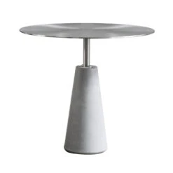 This striking side table boasts pure geometric shapes for a look of modern simplicity and sophistication. The conic base in stone supports a vertical element in steel on which the round steel base rests. The use of different materials with their strikingly contrasting finishes and textures will add a touch of contemporary charm to any decor, while the delicate color palette makes this piece suitable to any decor.