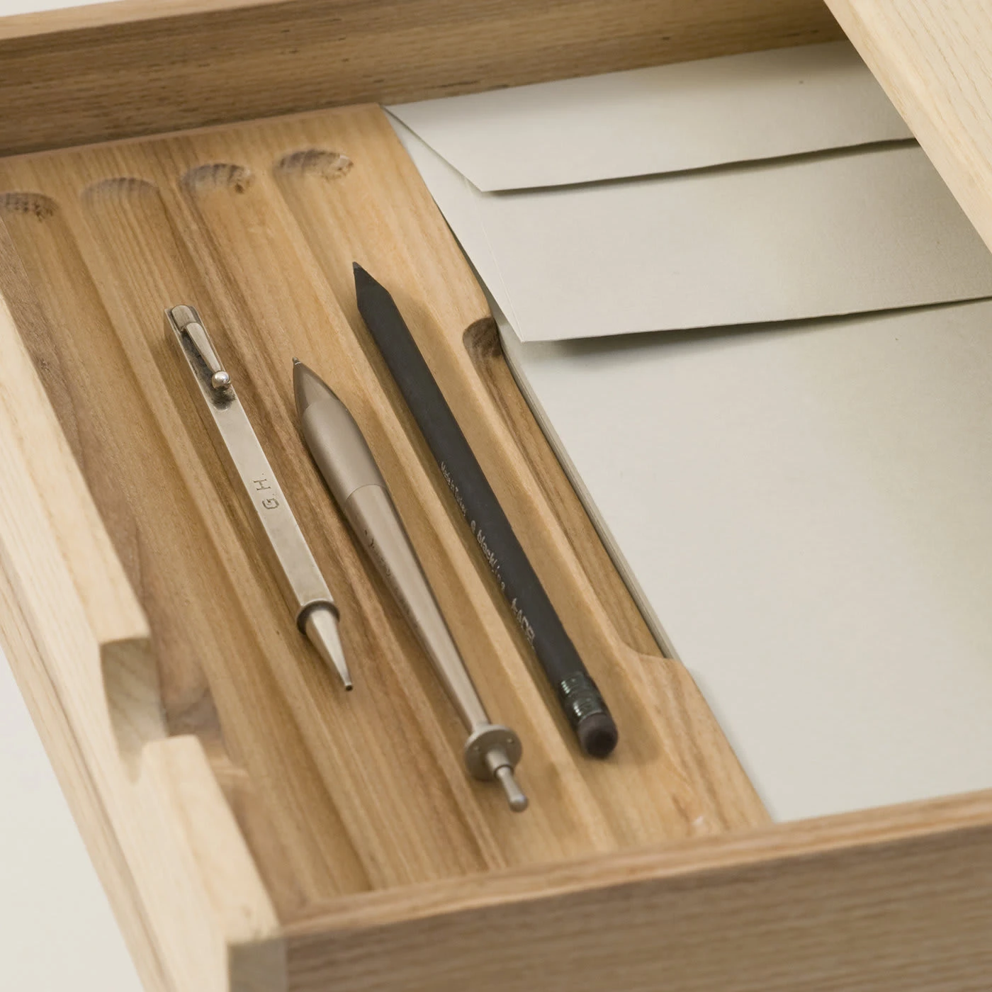 Adding a writing desk to a home is a precise stylistic choice that creates an intimate and concentration-friendly work space. This piece is made in solid ash and mahogany and is also available in walnut. In addition to the practical worktop, Ego has two drawers: one accommodates a 15-inch laptop, the other contains A4 sheets and an elegant pencil holder.