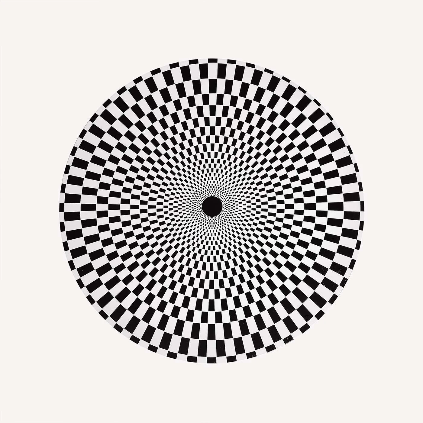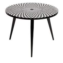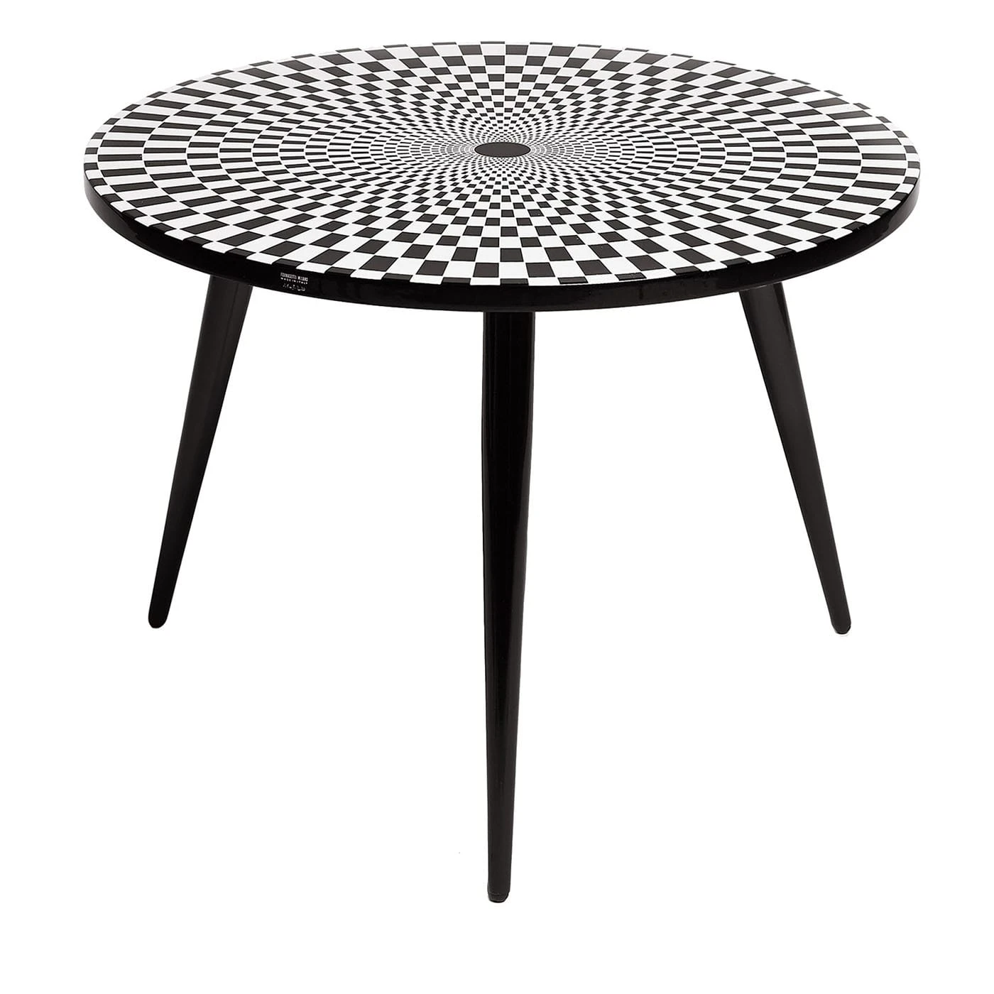 A hypnotic optical play the decoration of this hand-decorated low table with solid wood legs and protected by extra-clear glass. A complement that brings Fornasetti’s taste for geometric shapes to every room. Any minor discrepancies between similar creations are the result of craftsmanship and attest to the uniqueness of each product.