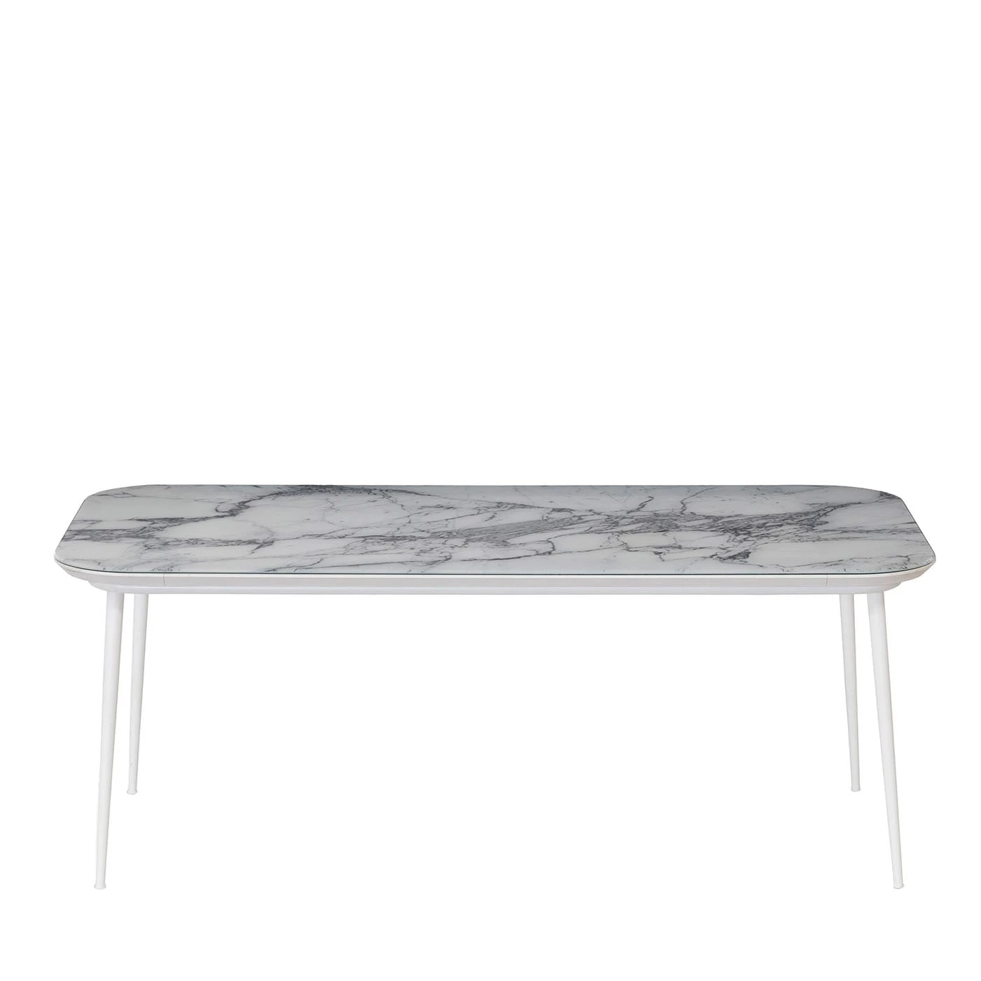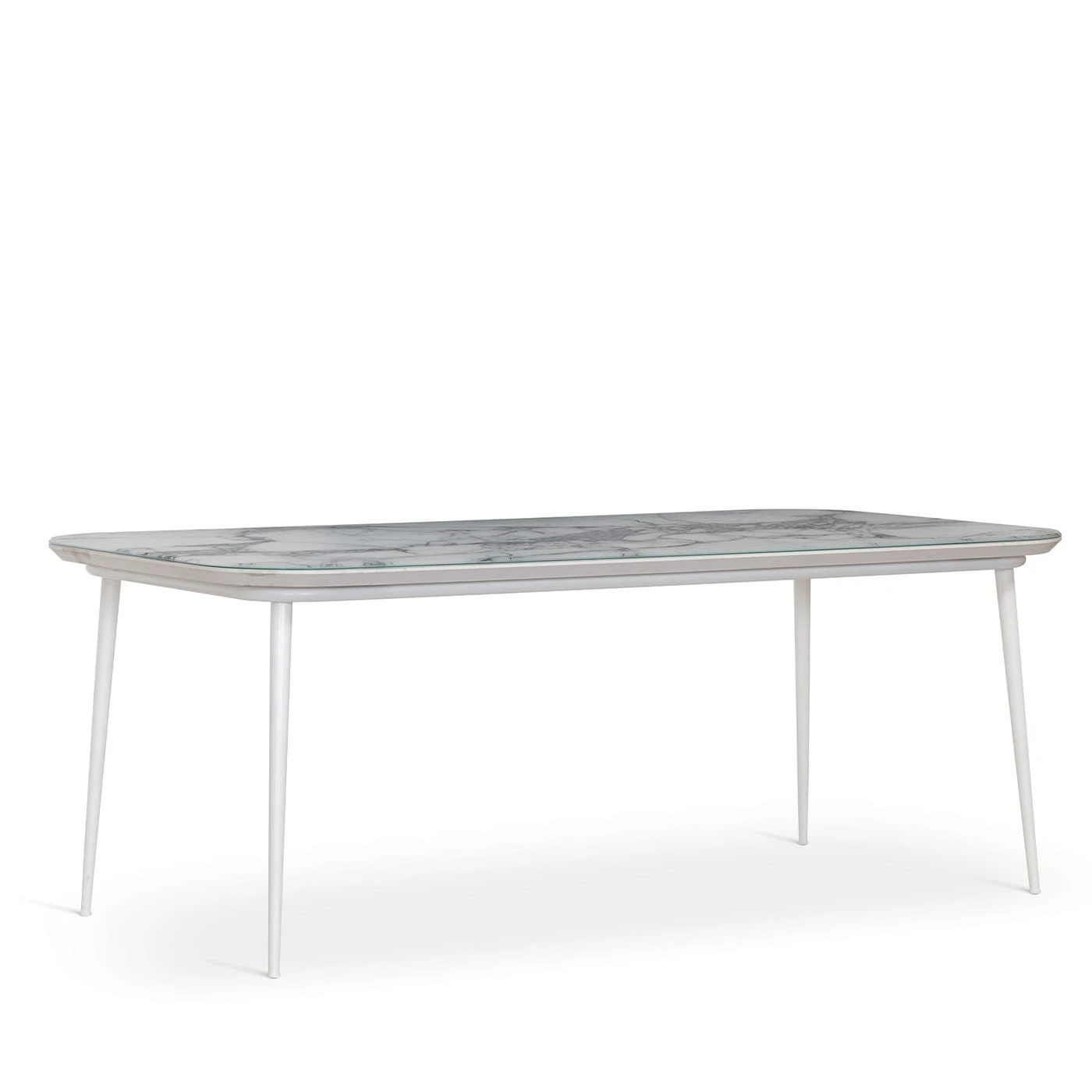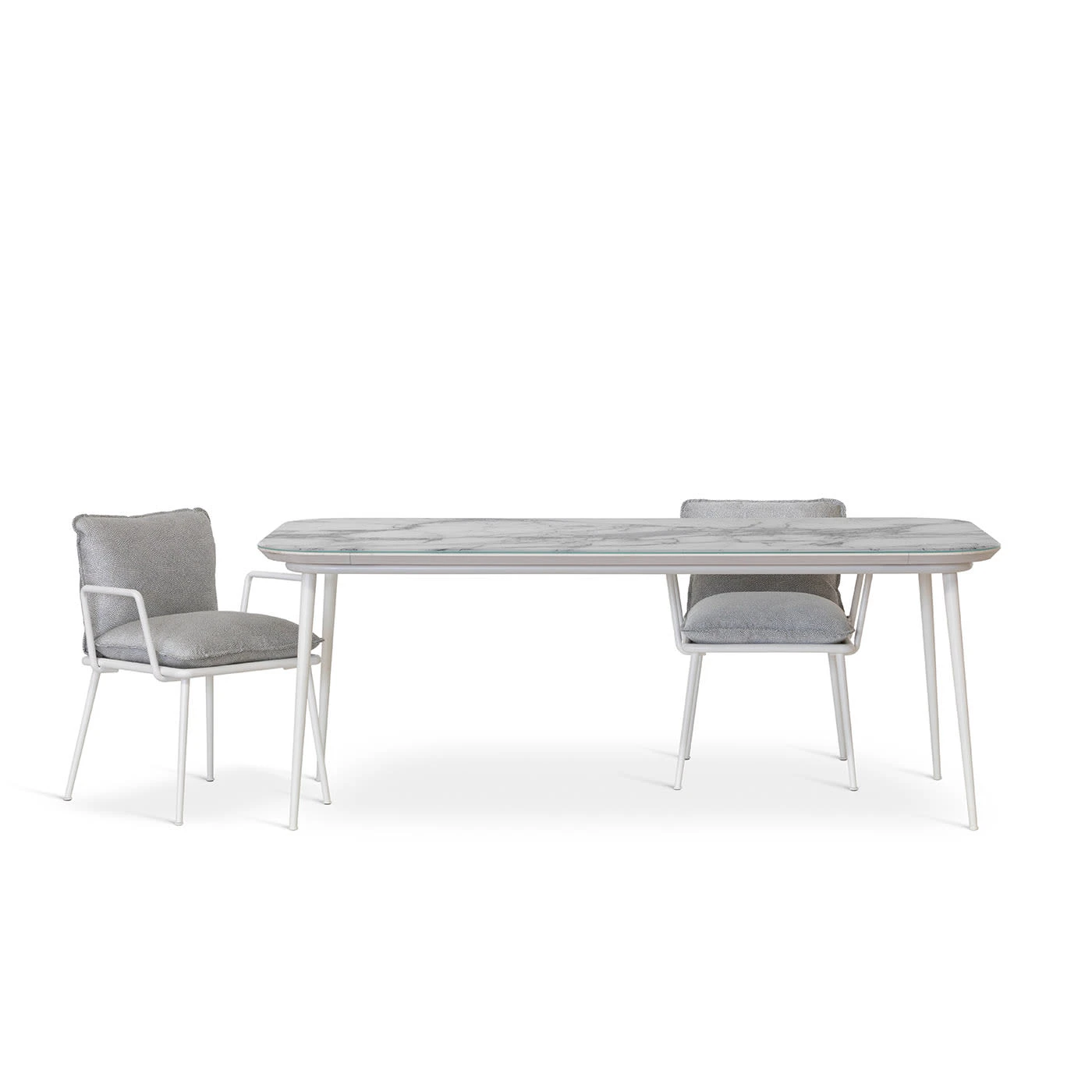 An elegant and minimalist design, the Filicudi Dining Table will make for a perfect setting to enjoy an outdoor dinner in good company. Boasting a Calacatta silver satin-finished glass sheet top, it features an HPL supporting panel resting on cylindrical aluminum legs, finished in a matte white powder. Please contact the Concierge for further details.
