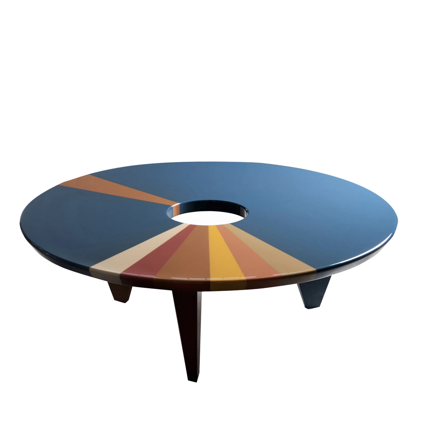 The abstract design of this exquisite table is a representation of aerial photography. Inspired by Art Deco with a modern twist, the rich color combination makes this piece the epicenter of a living room, while the premium hand-applied finish will allow a lifetime of use.