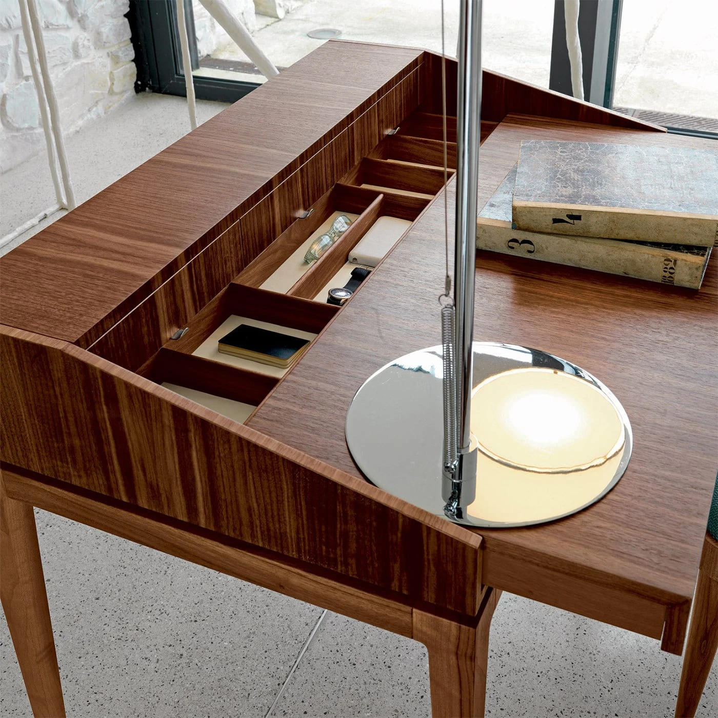 Aesthetics and functionality combine in the Ideale solid wood desk. A piece of high-quality craftsmanship tailor-made for everyday use as well as to furnish with style. The desk features: top in blockboard veneer, structure and legs in precious solid walnut, storage compartment, and drawers.