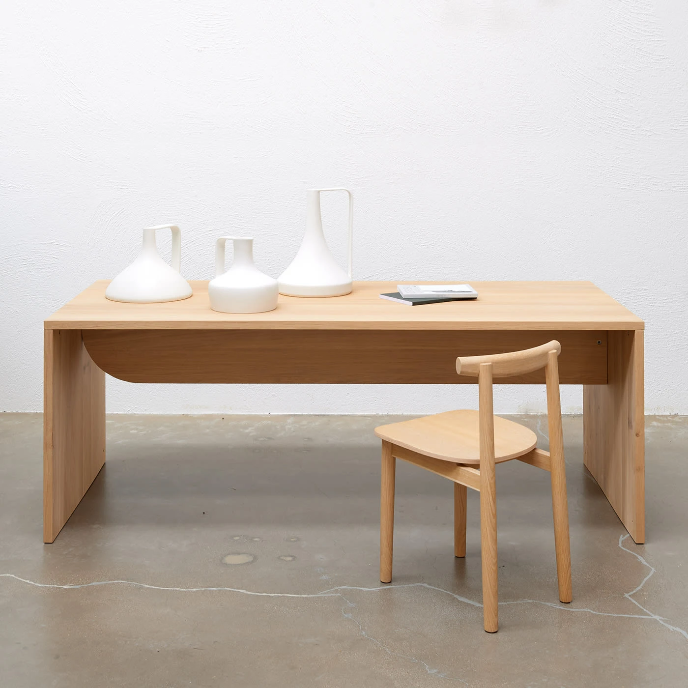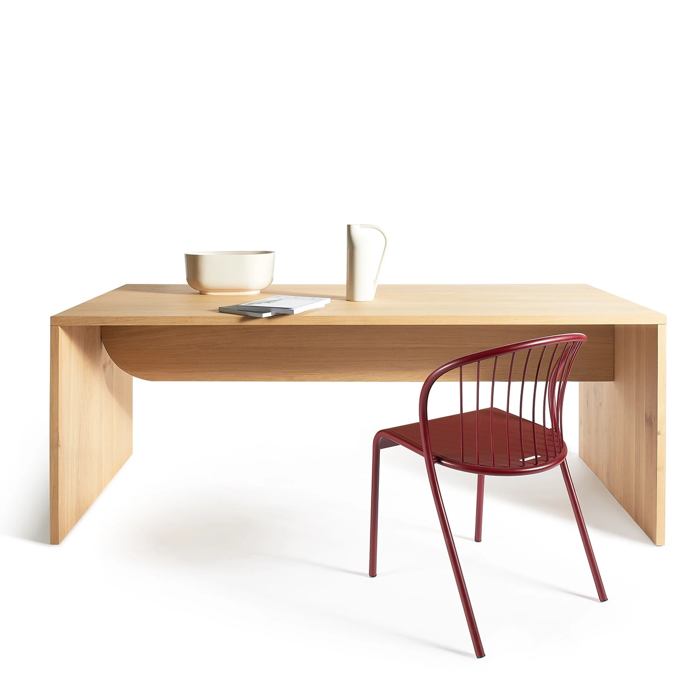Streamlined profiles enlivened by a quiet curve below the top distinguish this sleek table from the Iperbole Collection. A superb addition to dining rooms or private studies as a master desk, its otherwise restrained character gets enlivened by the unpredictable grain the oak frame naturally displays. Please explore the whole collection in the Artemest catalog.