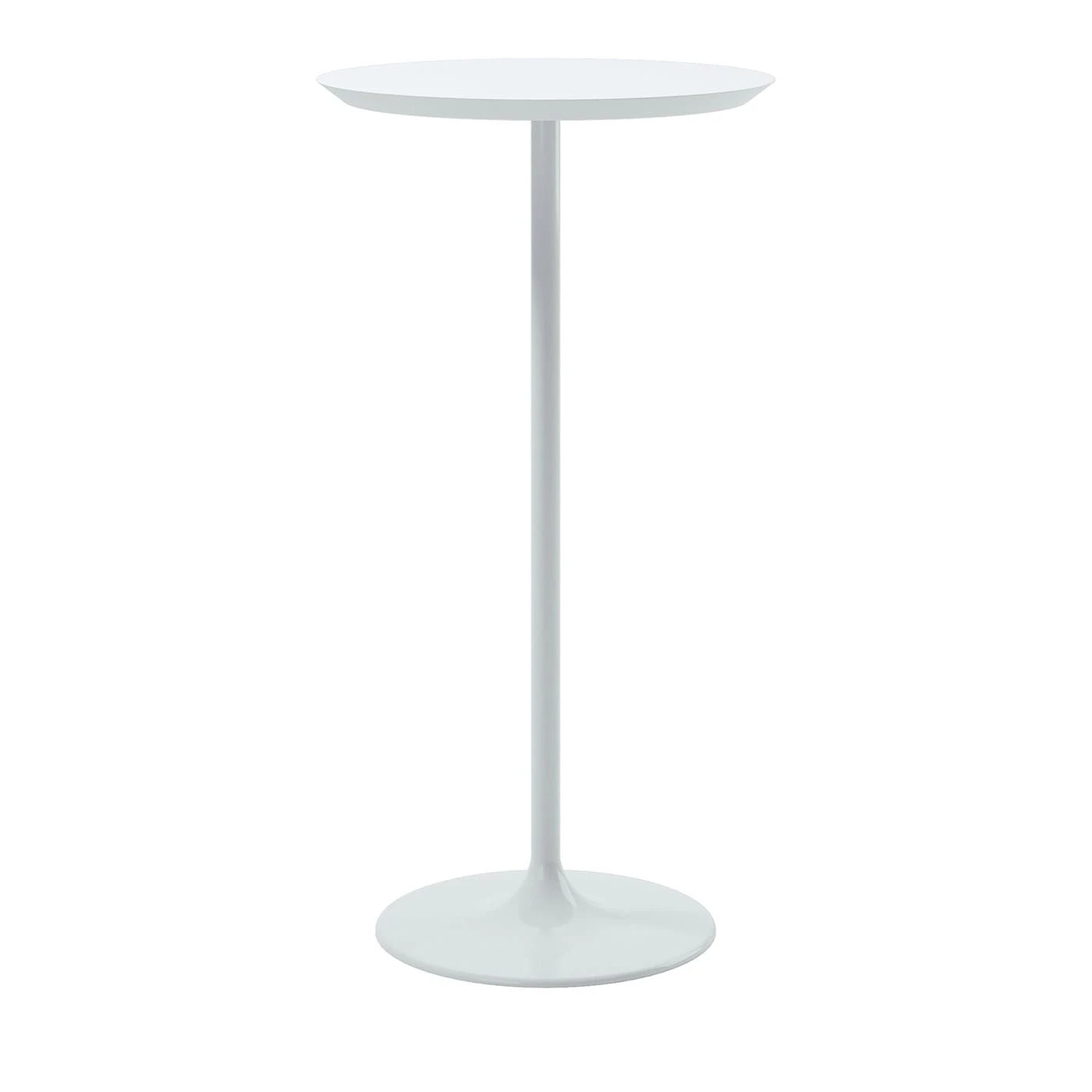 Vintage inspiration, contemporary production. Malèna is a steel table characterized by a double base with a cone profile, its shape is obtained by means of a particular turning process. There are many versions of the top, with a 45° beveled edge. The base of the table is in painted metal.