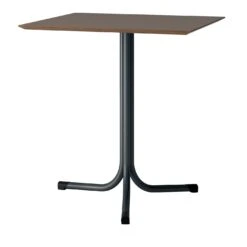 Studio Ideazione designed this essential small table having a relaxed breakfast enjoyed outdoors in mind. The slender frame consists of three metal tubes – undergoing cataphoresis and embossed matte-black lacquering – diverging to shape the tripod base and supporting the square Resysta® top finished in brushed teak. Please contact the Concierge for finishing variants.
