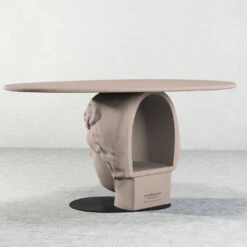 Inspired by the moon reflected in the circular white marble top veiled by gray veins, the design of this set of two small tables is stunning in its simplicity. Straight, bold legs in solid wood feature slight recessed at the top to welcome the round marble tops and indeed reveal the masterful artisan process behind their crafting.