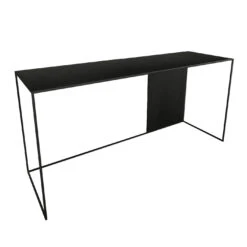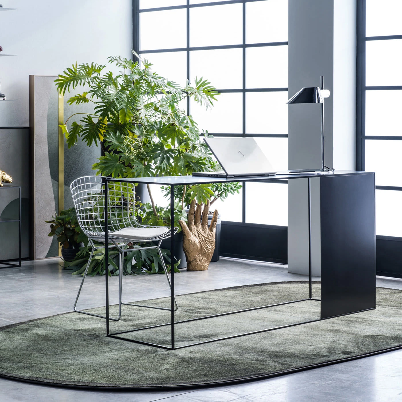 This writing desk is a testament to minimalist design. Marked by a light geometric silhouette made up of slim and straight lines, it is entirely made of metal. Boasting empty spaces of powerful contemporary flair, it features a black panel on the right that covers the plugs and electric wires. There is the possibility of equipping the piece with a magnetic drawer, please ask the Concierge for further details.