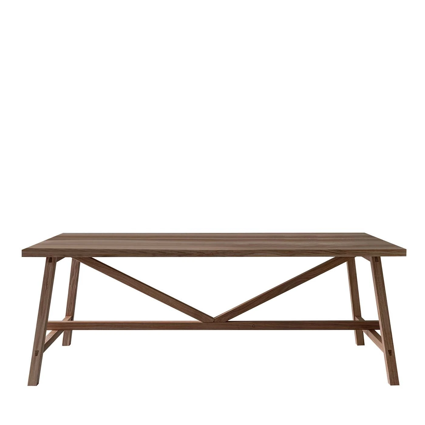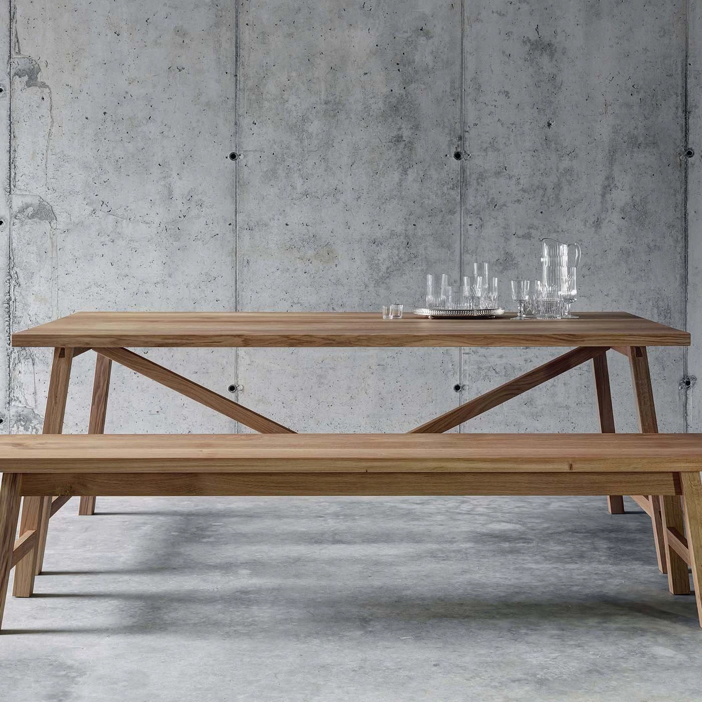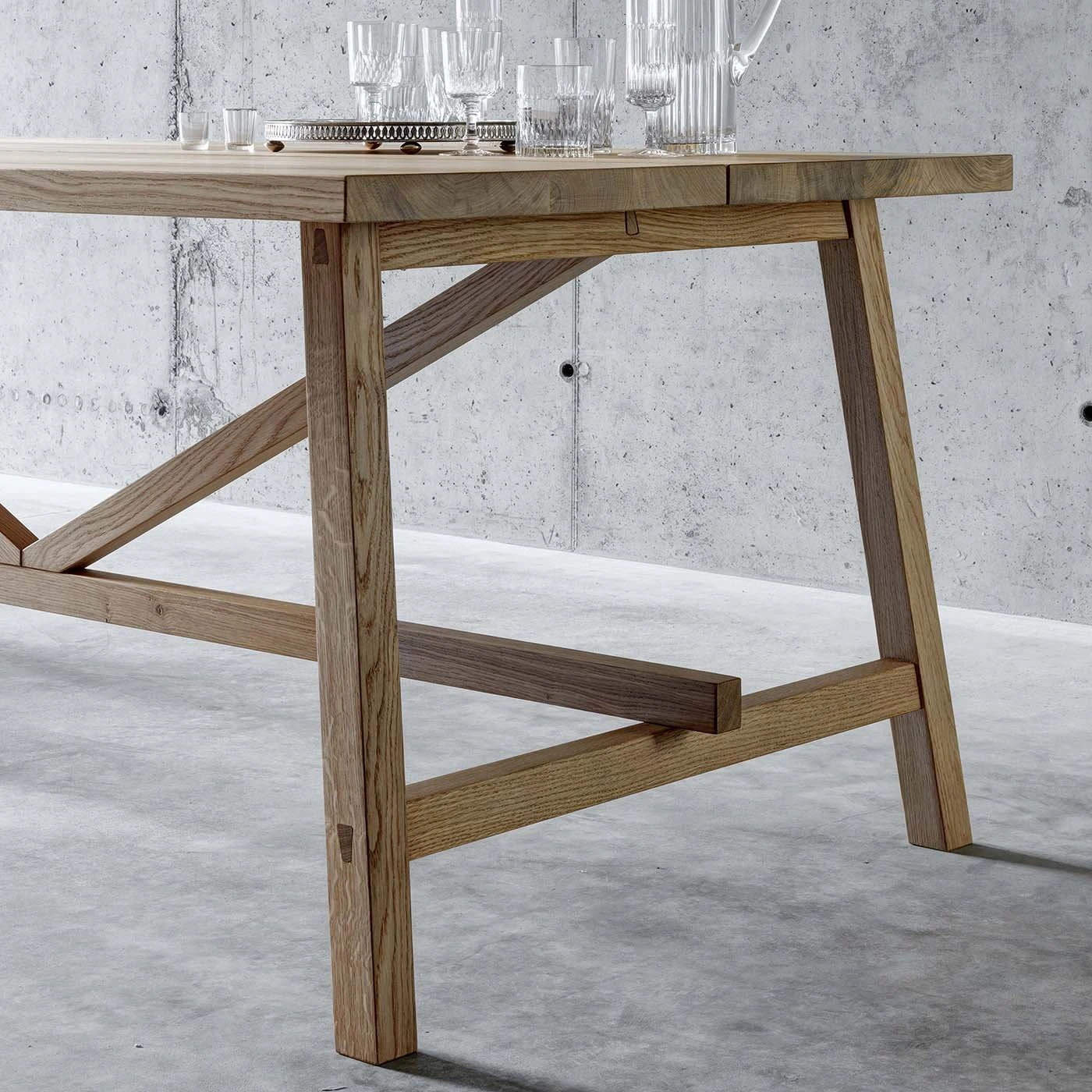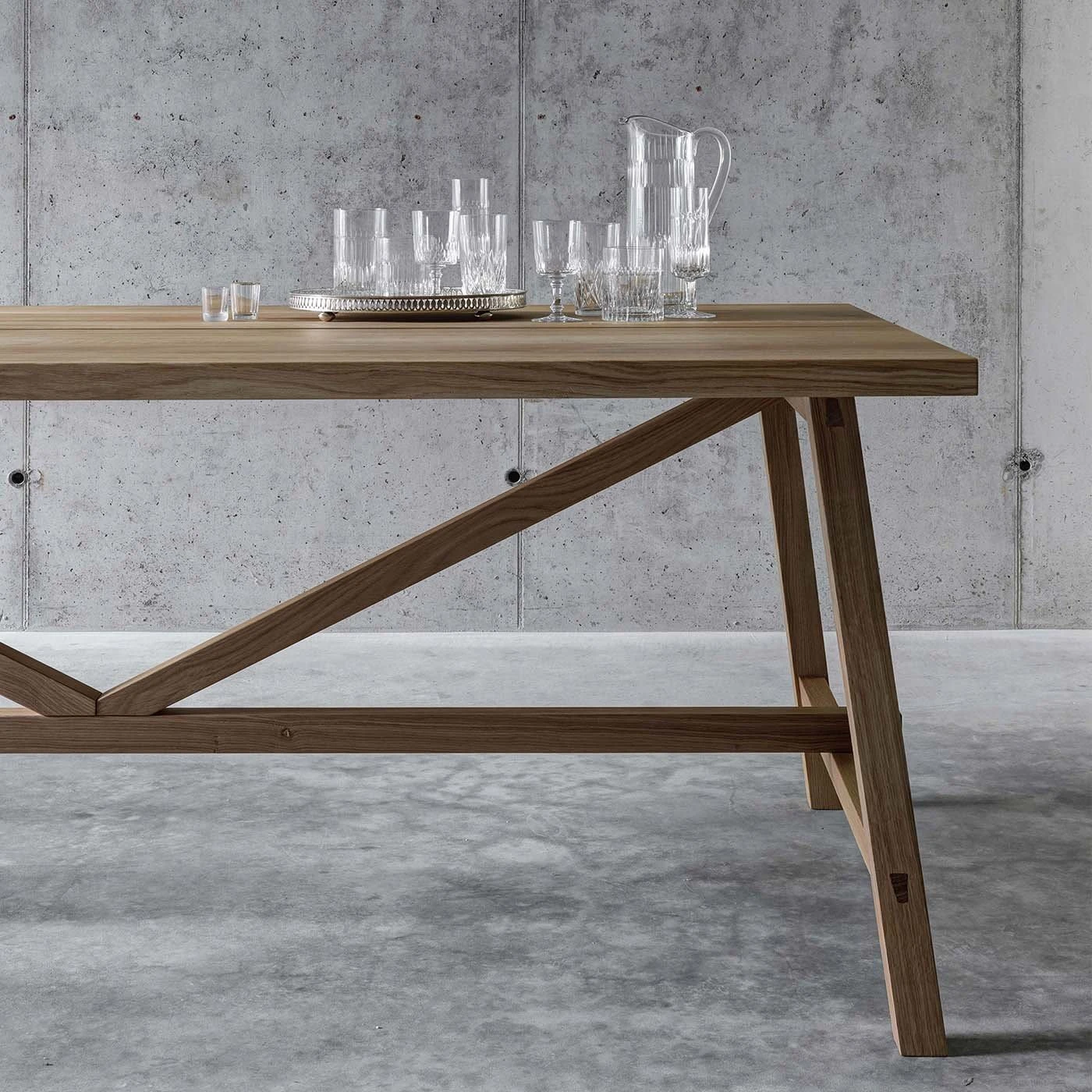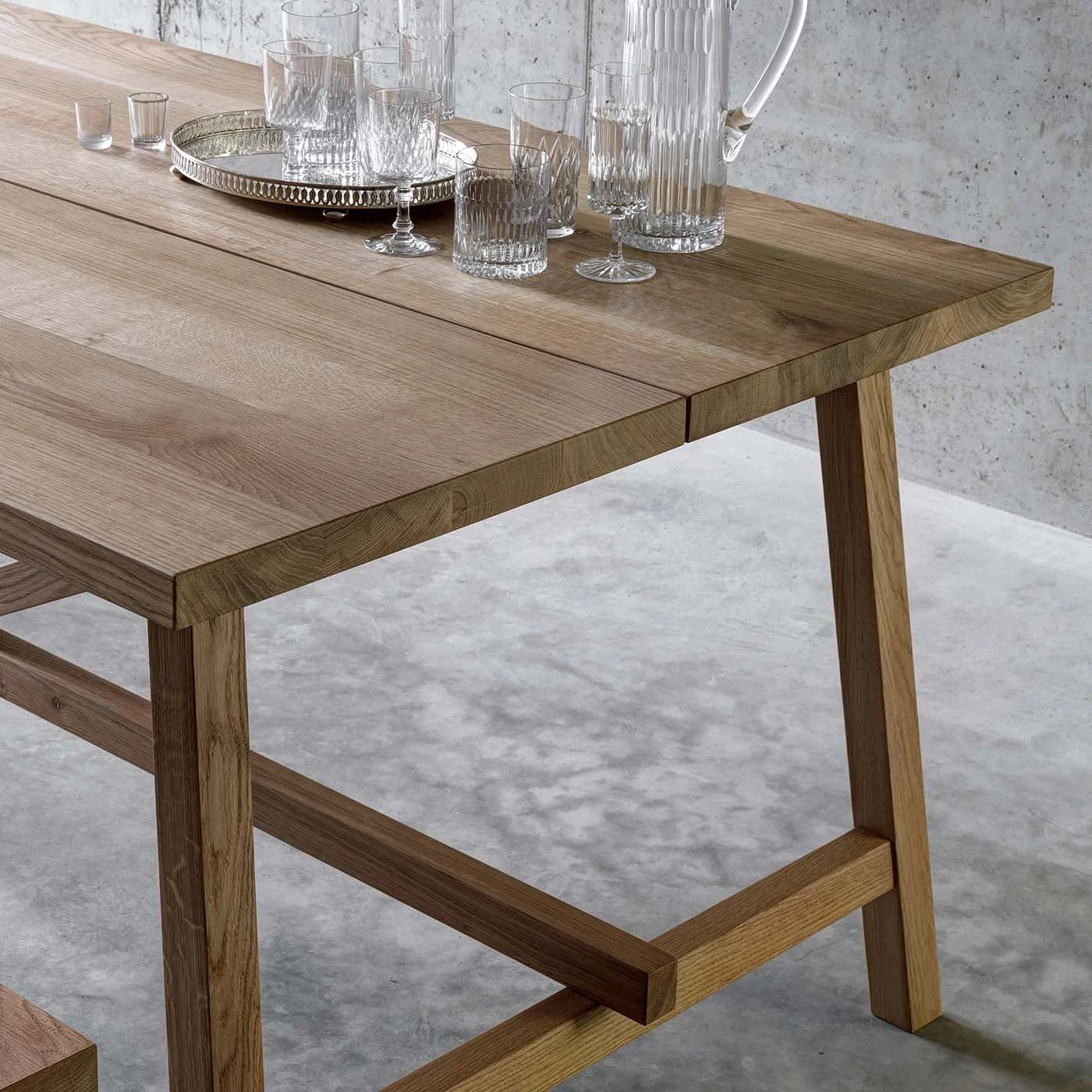 This elegant table in solid oak is a timeless celebration of harmonious proportions. Its design is made up of straight lines crossing at different angles to create a sense of lightness and the sophistication found in attention to details. The warmth of prized wood, showcasing its unique grain, makes this piece a superb choice for both a dining room or an elegant office. Also available with a slightly longer width (100 cm), this table is also available in two longer versions (200 and 230 cm), please ask the Concierge for details and pricing.