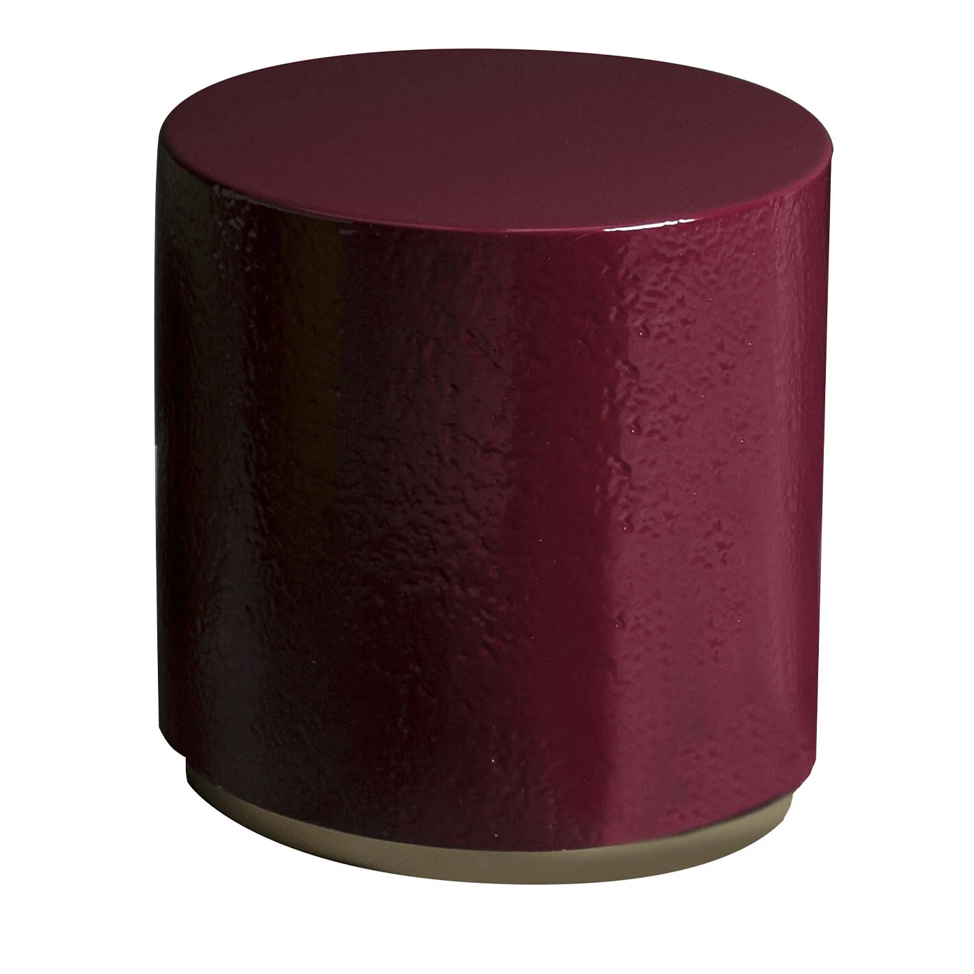 A sleek and timeless design of contemporary sophistication, this sturdy cylindrical piece can be used as a side table or pouf according to mood or personal taste. Handmade of resin and liquid aluminum, it features a vivid purple shade and a textured profile. Available in other colors on the Artemest catalog, please consult the Concierge for further information.