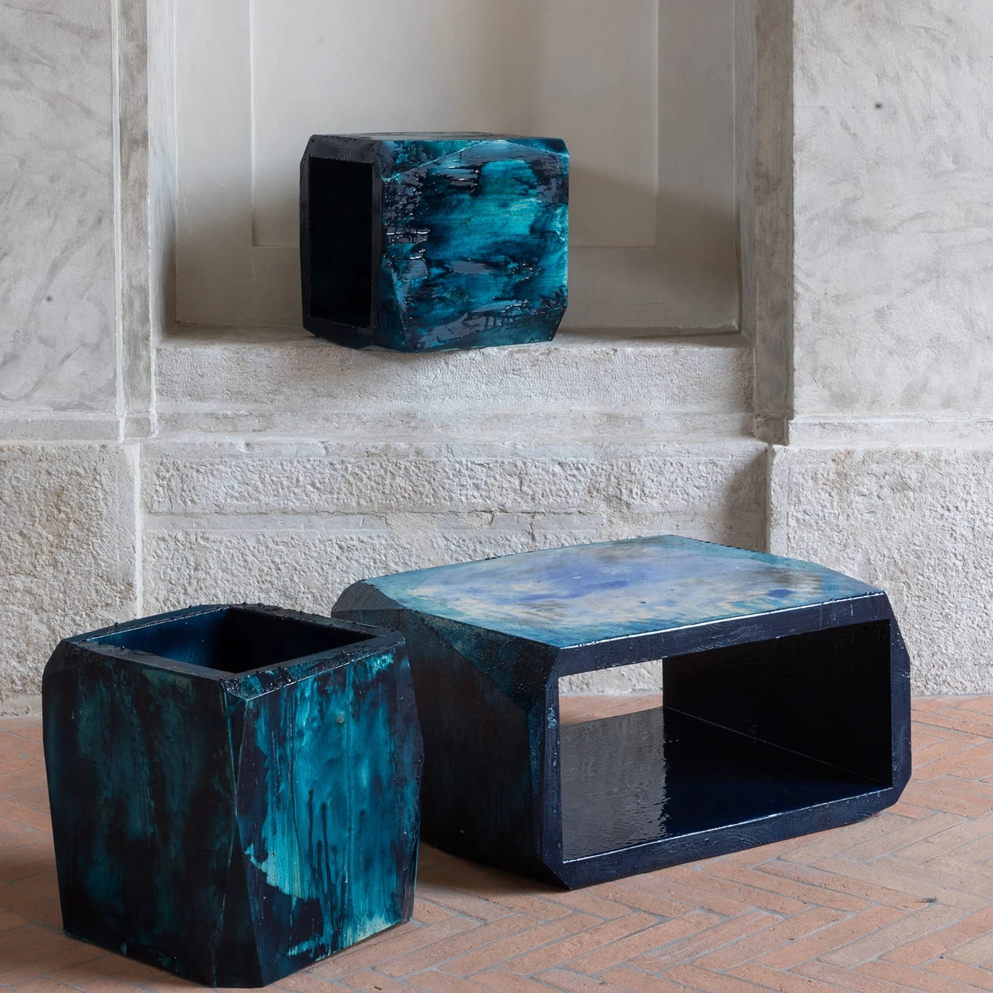 ROU Materiaal’s sculptures come from woods that are treated in a way that combines the use of techniques that enhance natural veins or imperfections with others that give a more contemporary texture. The link between a “primitive” material world and the search for contemporary forms and textures represents the leitmotif of ROU Materiaal’s poetics. Art and design come together in a unique work.