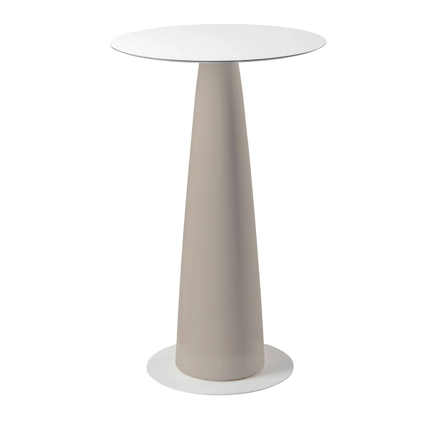 A clever juxtaposition of sleek geometric volumes defines the design of this accent table in polyethylene resin, a sophisticated piece for displaying a lamp or a vase in modern homes. Two white-finished disks stand at the base and at the top (Ø 69cm), respectively, flanking the bold conical column finished in taupe that gives the table its quiet yet strong sculptural character. Other color variants are available, please check the Artemest catalog for details.