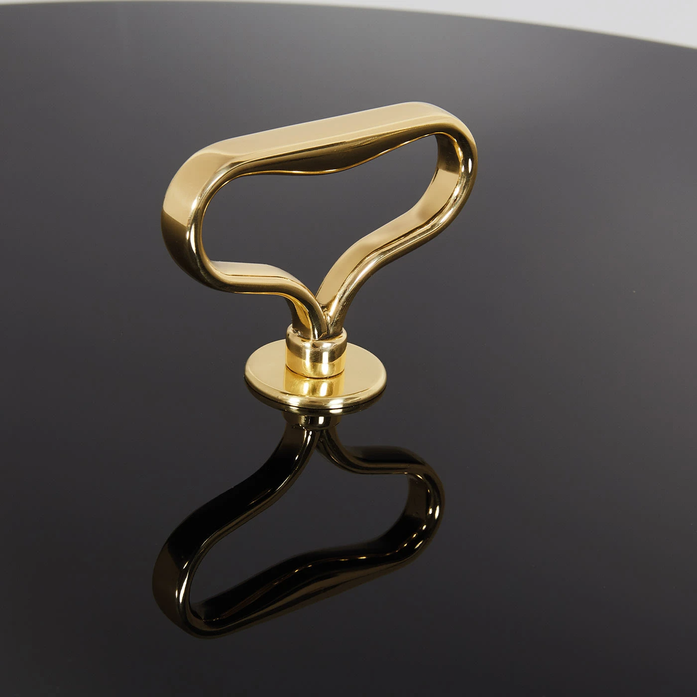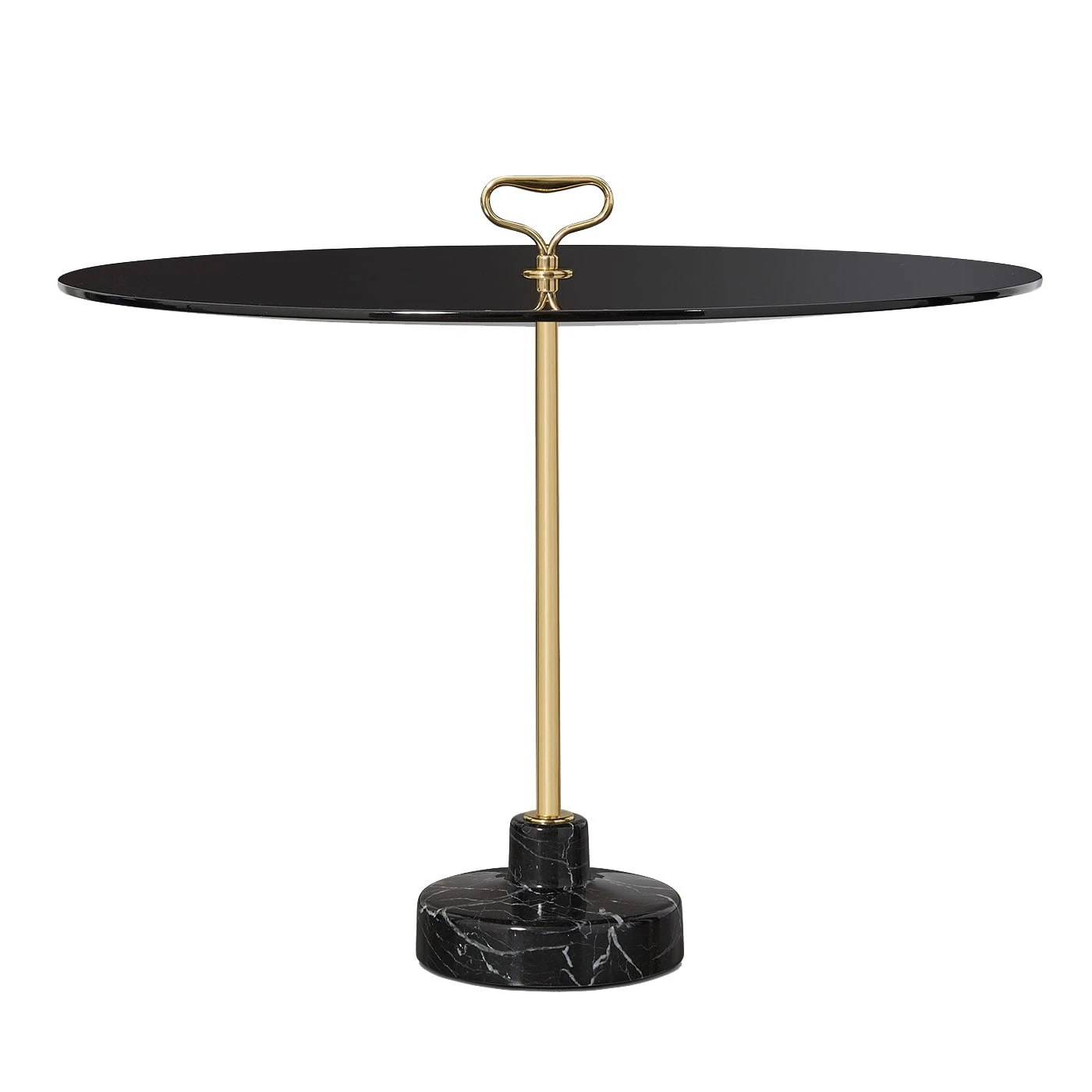 Deftly handcrafted of first-rate materials in a sleek and clean design of timeless sophistication, this side table is a stunning design by Ignazio Gardella from the Stand series of side tables. Resting on a black marble base, it features a brass stem topped with a practical handle and a round top (70cm diameter) in polished black-lacquered wood. Available for customizations, please consult the Concierge for options.