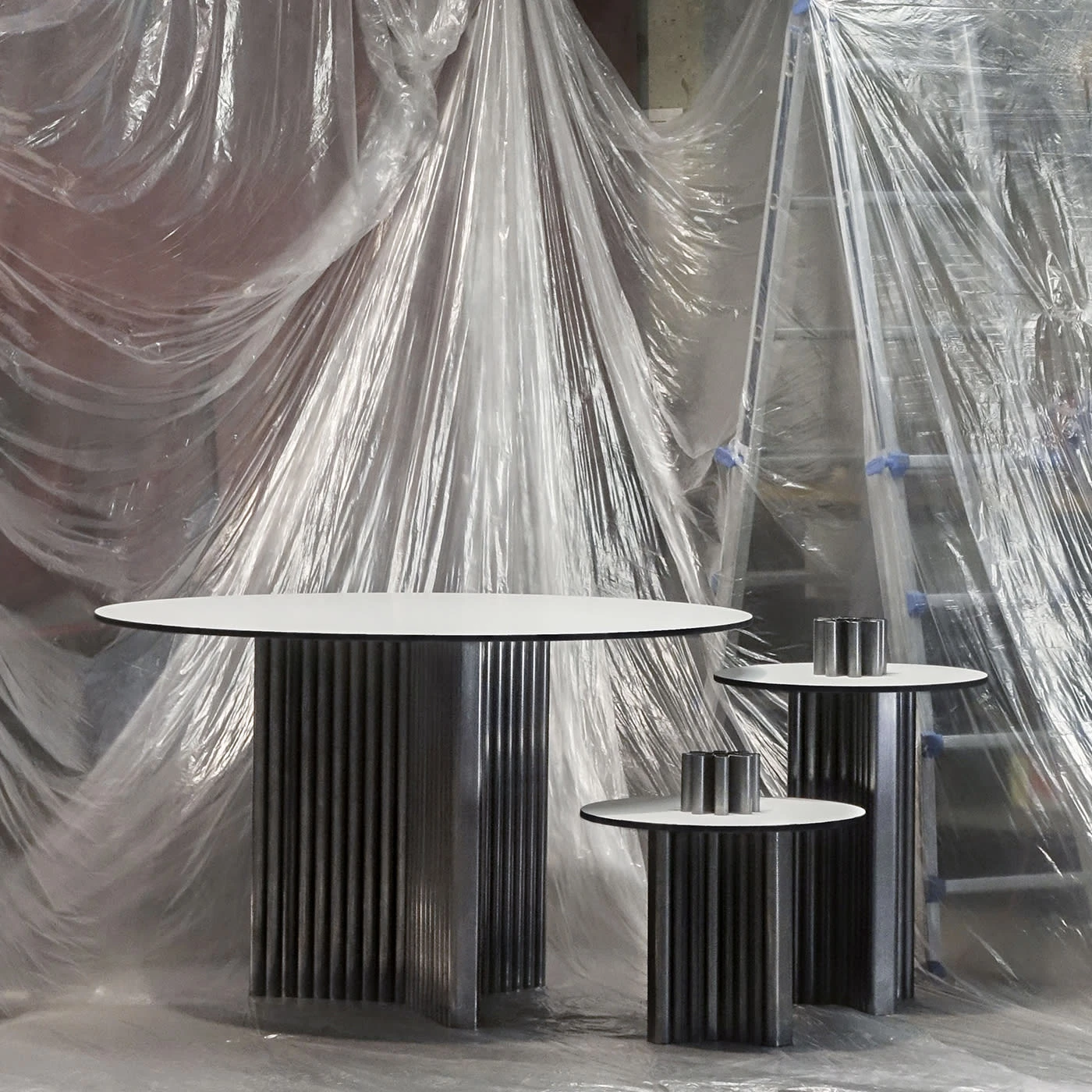 “T–ST03” is a functional and eccentric-looking side table characterized by a 3-pointed star shaped central leg. The orientation around its own axis generates ever-new shapes and perspectives that blend with the domestic spaces. The top is made of Fenix®, a revolutionary high-quality material, extremely resistant to scratches, low light reflectivity, anti-fingerprint surface and a soft-touch feeling. Temper products are made of raw pickled iron. Please inquire with the Concierge for more options.