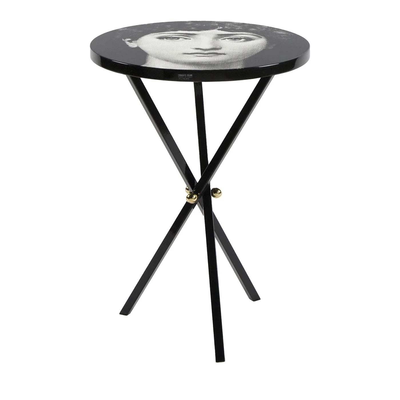 The Fornasetti side table is a design piece made in silkscreened, painted and lacquered wood following the Atelier’s traditional craftsmanship method. Tema e Variazioni, the most iconic décor in Fornasetti’s imagery, turns this side table into both an art object and a collector’s item. Each Fornasetti table is one-of-a-kind and any minor discrepancies between similar pieces are the result of artisan production processes.
