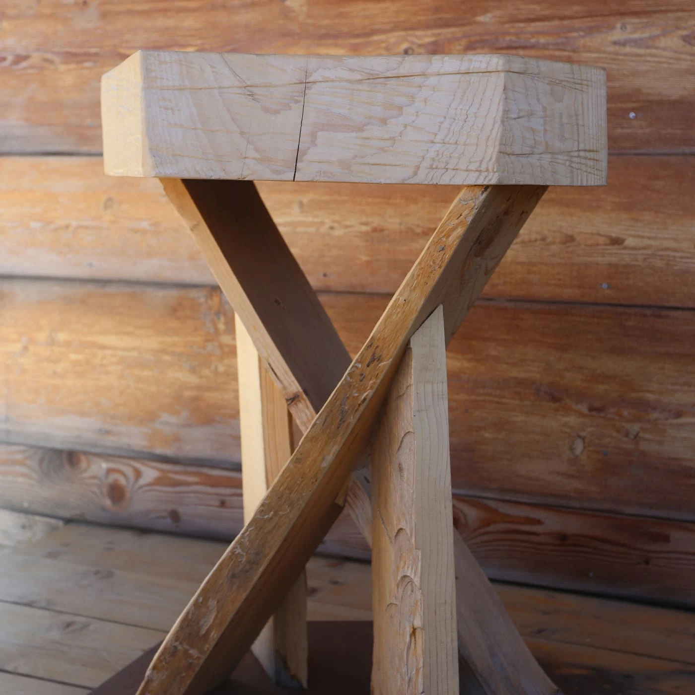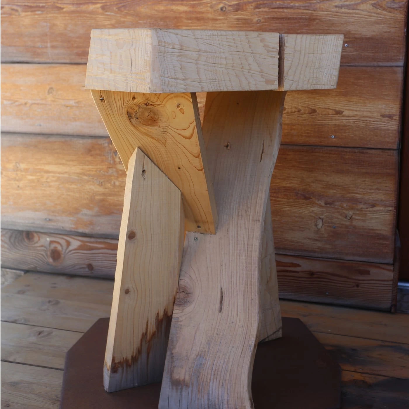 Stunning in its simplicity, this extraordinary artwork is a sculptural table that will elevate the aesthetic of a mountain chalet or rustic-chic loft apartment. Entirely handmade of wood hailing from the Alps with no technological assistance, it features a captivating, intertwined shape comprised of various hand-cut elements.