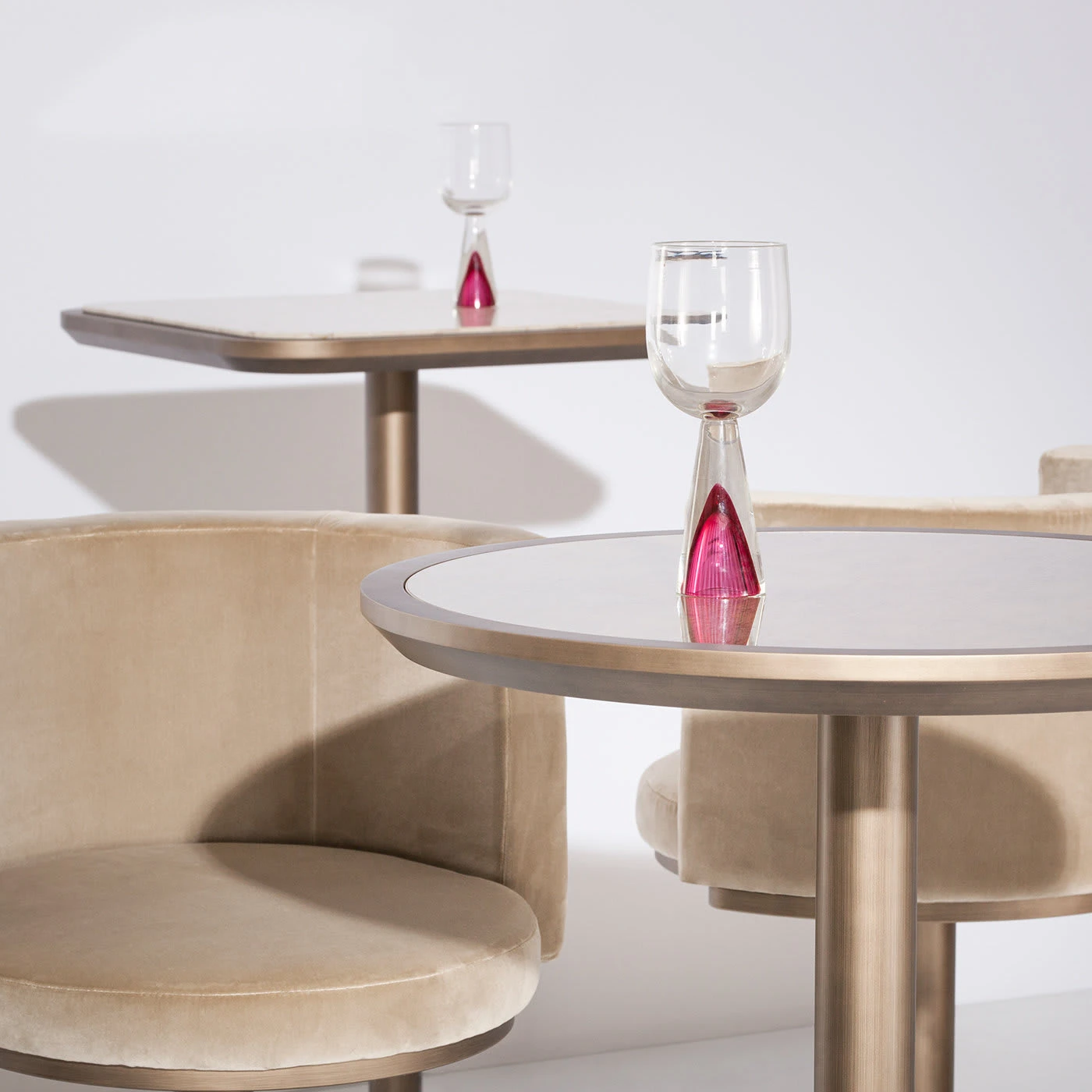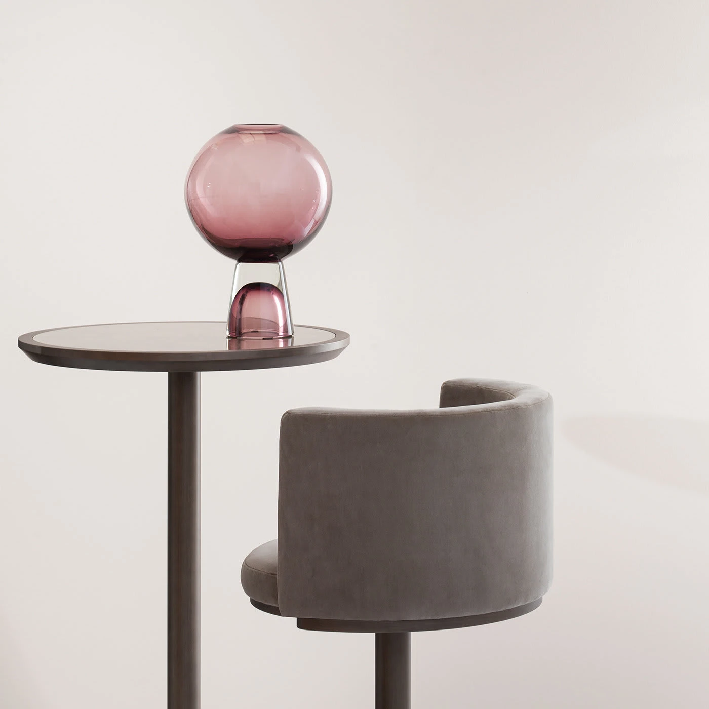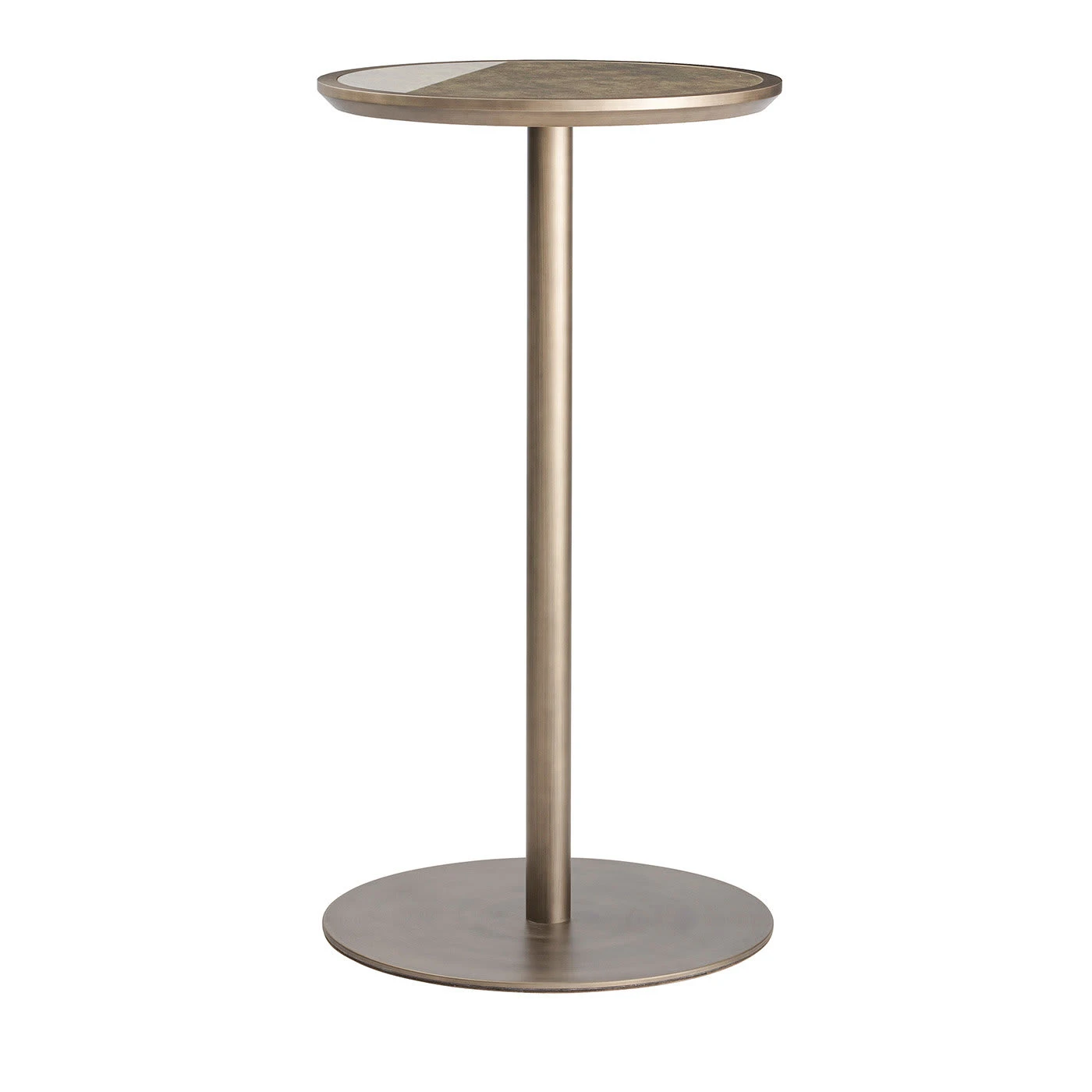 Crafted with quality materials and a sleek and minimalist design, the Virna Circle Bar Table is a refined dining nook perfect for parties. The stunning round top of brushed brass silver tempered glass stands on a slender brushed brass-finished iron pedestal base that eliminates the unnecessary clutter of legs underneath thus creating an airy and functional stage in a modern lounge, loft, and kitchen. Nylon glides allow easy movement and protect hardwood or tile floors. Contract and commercial certifications available upon request.
