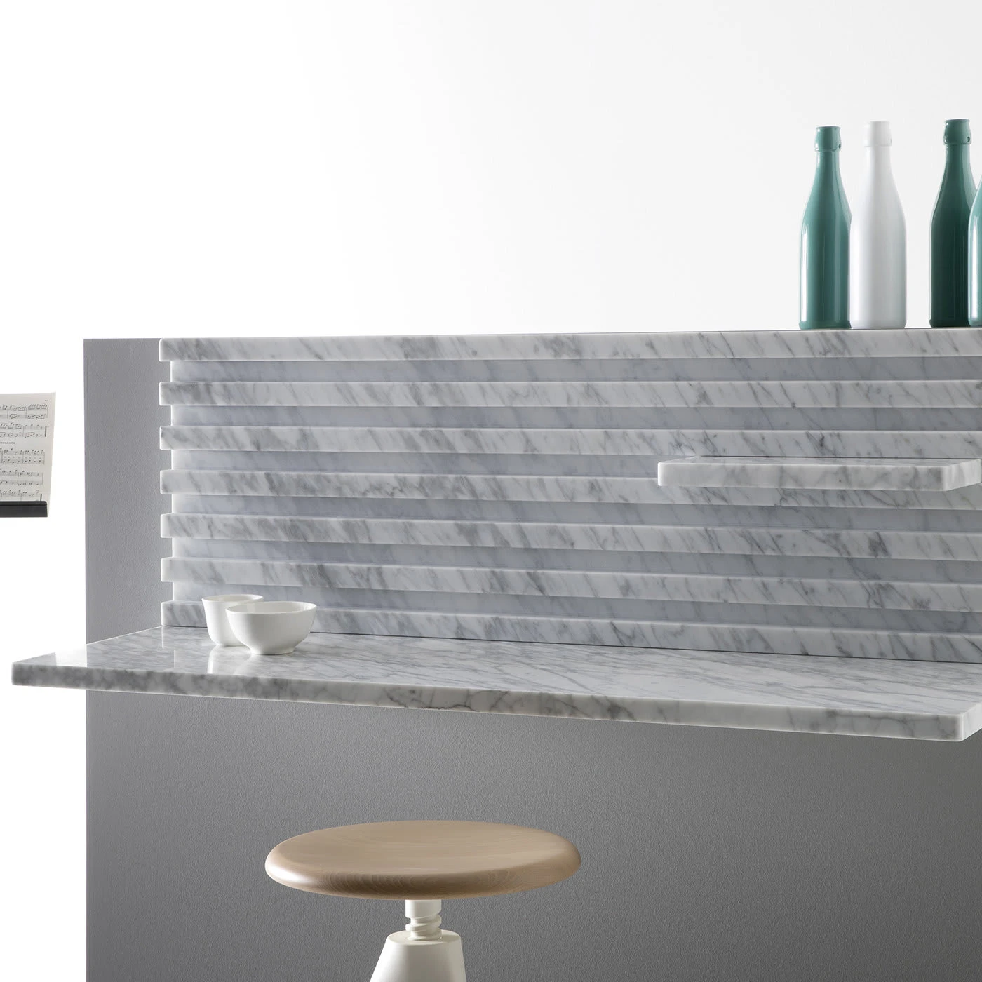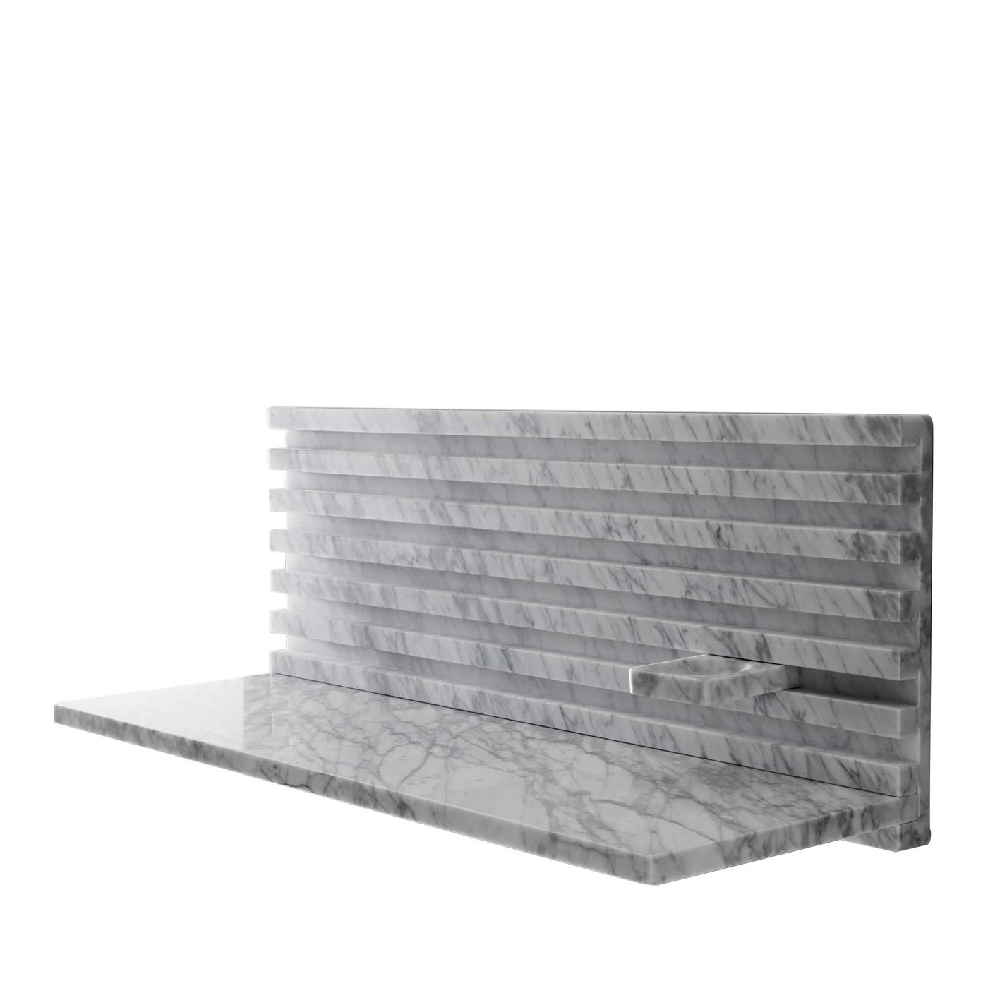 Desk, wall-monted modular system. Furniture characterized by flexibility and transformation; it can be placed at the entrance or in any other rooms. Available in White Carrara marble, Black Marquina marble and on request in other types of stones.