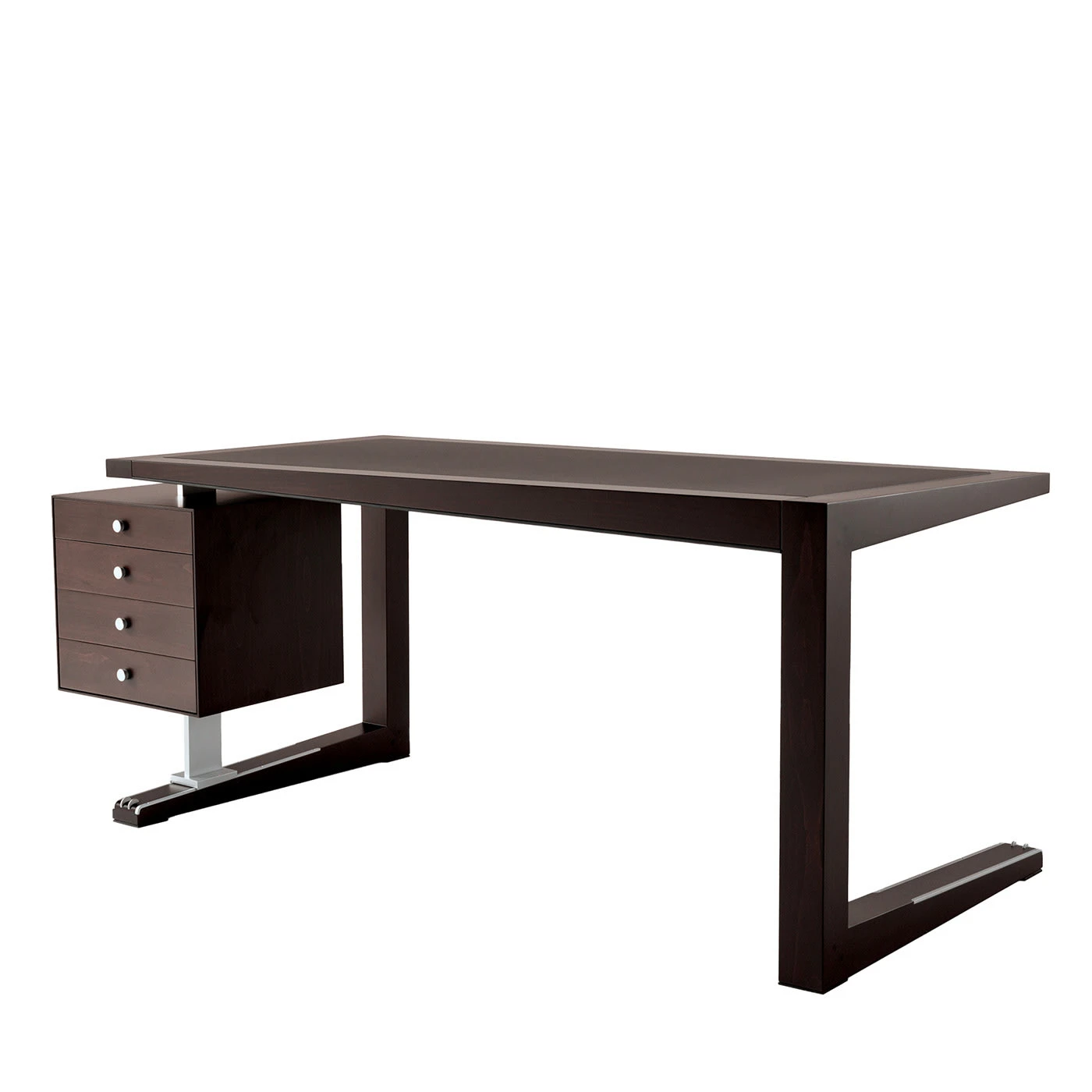 Exceptionally functional in its clean and essential, Nordic-inspired style, this writing desk is handmade of solid and polished beechwood, with a top available in liquid rubber or in a polished ebony veneering. Enriched with solid ebony and anodized aluminum details, it rests on PVC adjustable feet. The four drawers feature hidden sliding rails varnished aluminum and are veneered with beechwood.
